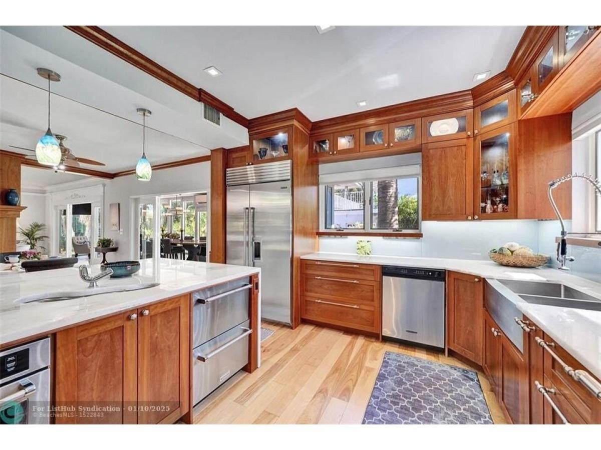 Charming 1946 Key West style home on palm-lined Tyler St, 3 blocks to Hollywood Beach. Lg dbl lot. 6 bed 5 bath, 5,550 SF w/ decks amp; balcony. Lovingly renovated, top-of-line materials. Lg bright open rms, Chefrsquo;s eat-in kit w/ custom cabinets, quartzite ctrs, French gas range, Sub zero refrig amp; built-in freezer amp; refrig drawers, huge pantry. Lg living rm w/ gas fireplace, 30rsquo; dining rm w/ floor to ceiling impact glass amp; view of lush tropical landscaping amp; fountain. Covered deck w/ outdoor kit amp; bar w/ granite ctrs amp; 2 refrigs. 1st floor bedrm or office, 2nd floor w/ original wood flooring amp; 4 bedrms, one used as a walk in closet for primary bedroom w/ his amp; her baths. The carriage house apt has new deck amp; stainless appl. Air conditioned 2 frac12; car garage w/ epoxy floor has plenty of storage.