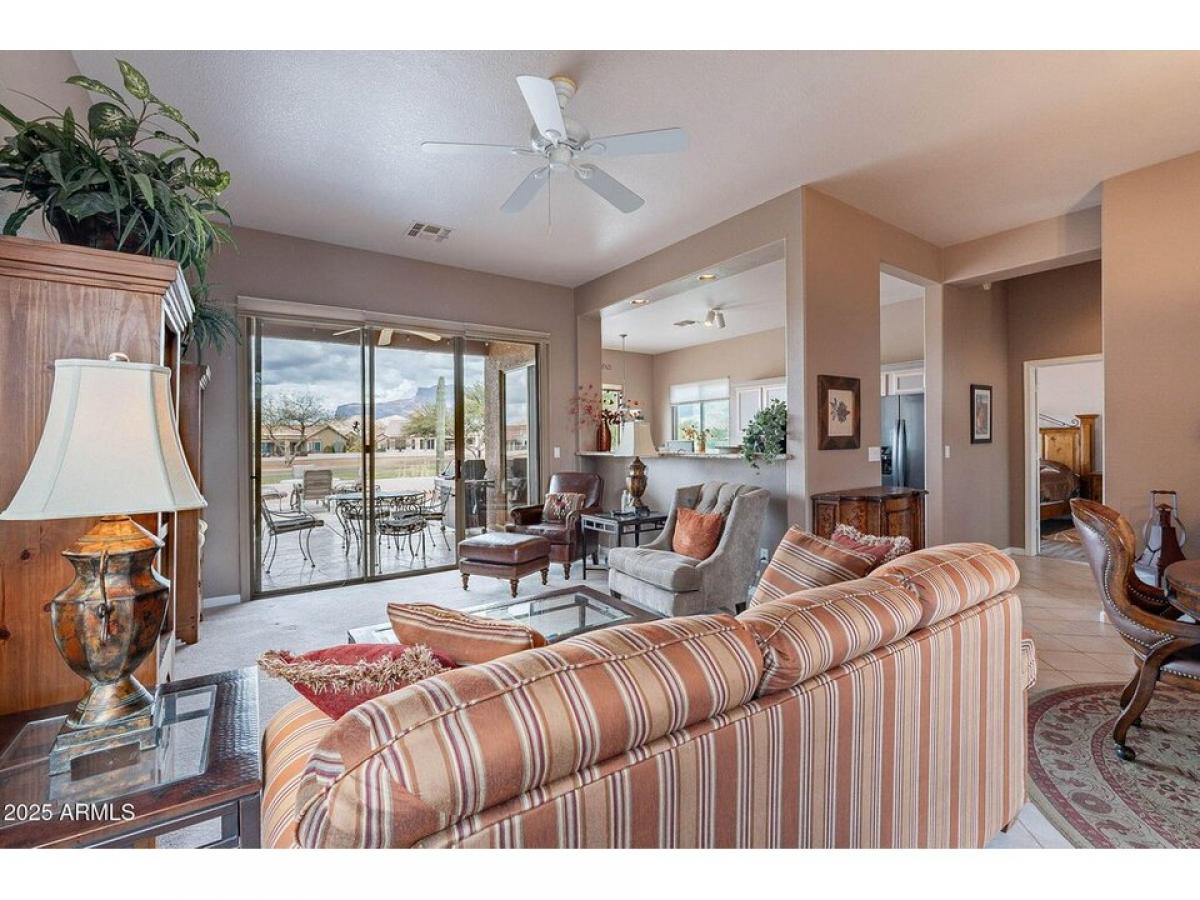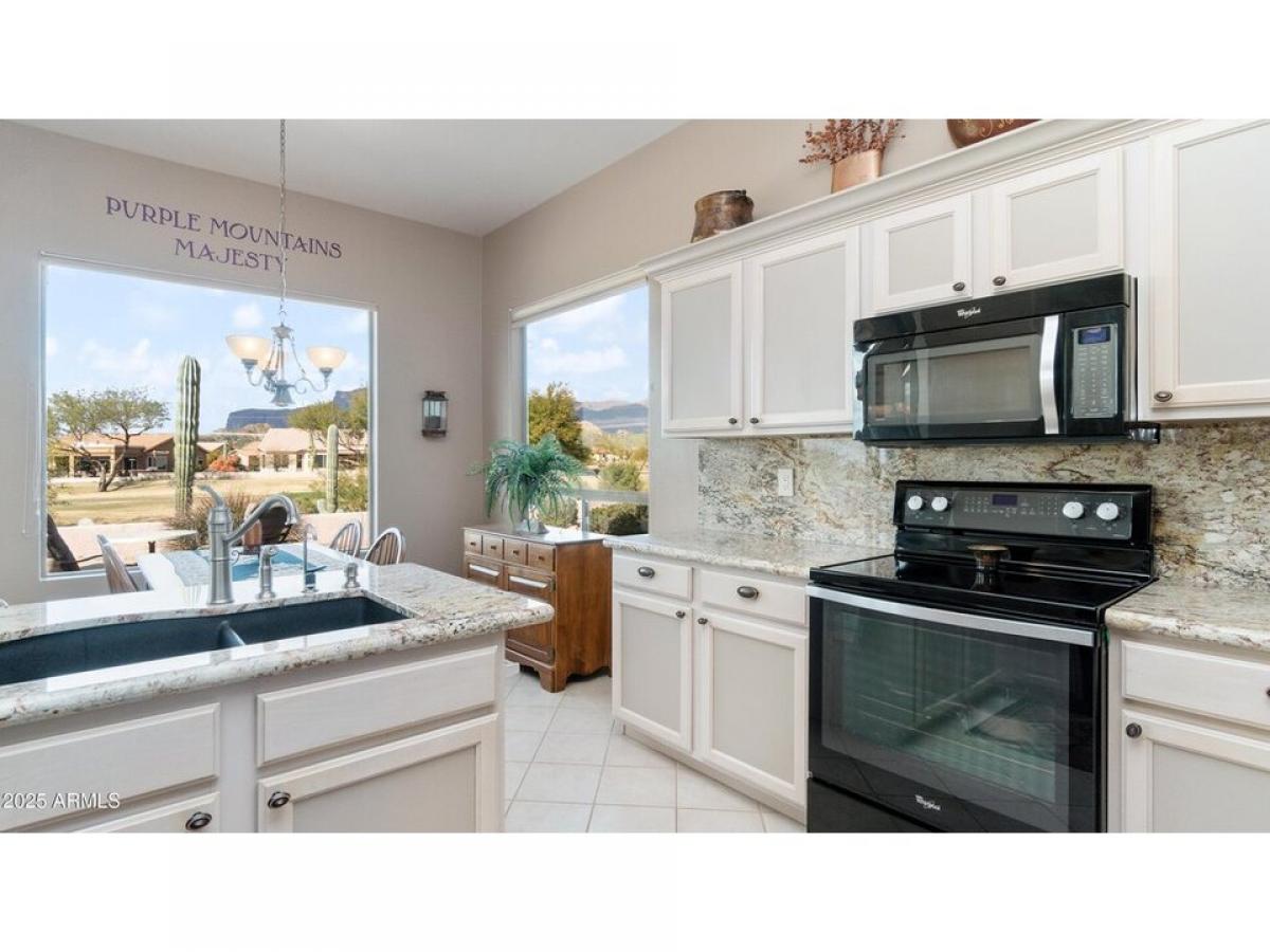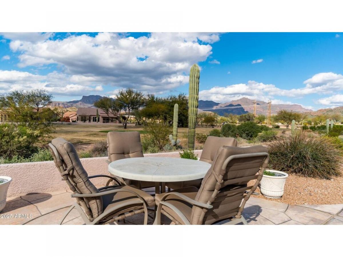 Welcome to your new home located on the 10th fairway of the Mountainbrook Golf Course!! Enjoy breathtaking views and amazing sunsets of the iconic Superstition Mountains from your extended back patio! This beautiful Gemini-twin home has an eat-in kitchen with granite counters, breakfast bar, gun metal appliances, newer refrigerator, R/O system, 2-tone painted cabinets with slide out drawers, split bedrooms offer privacy, primary bedroom with French doors, large walk-in closet, double sinks and walk-in shower. Garage has built-In cabinets, work bench and water softener. HOME COMES FURNISHED AND THE GOLF CART CONVEYS - HAS NEW BATTERIES NOVEMBER 2023!