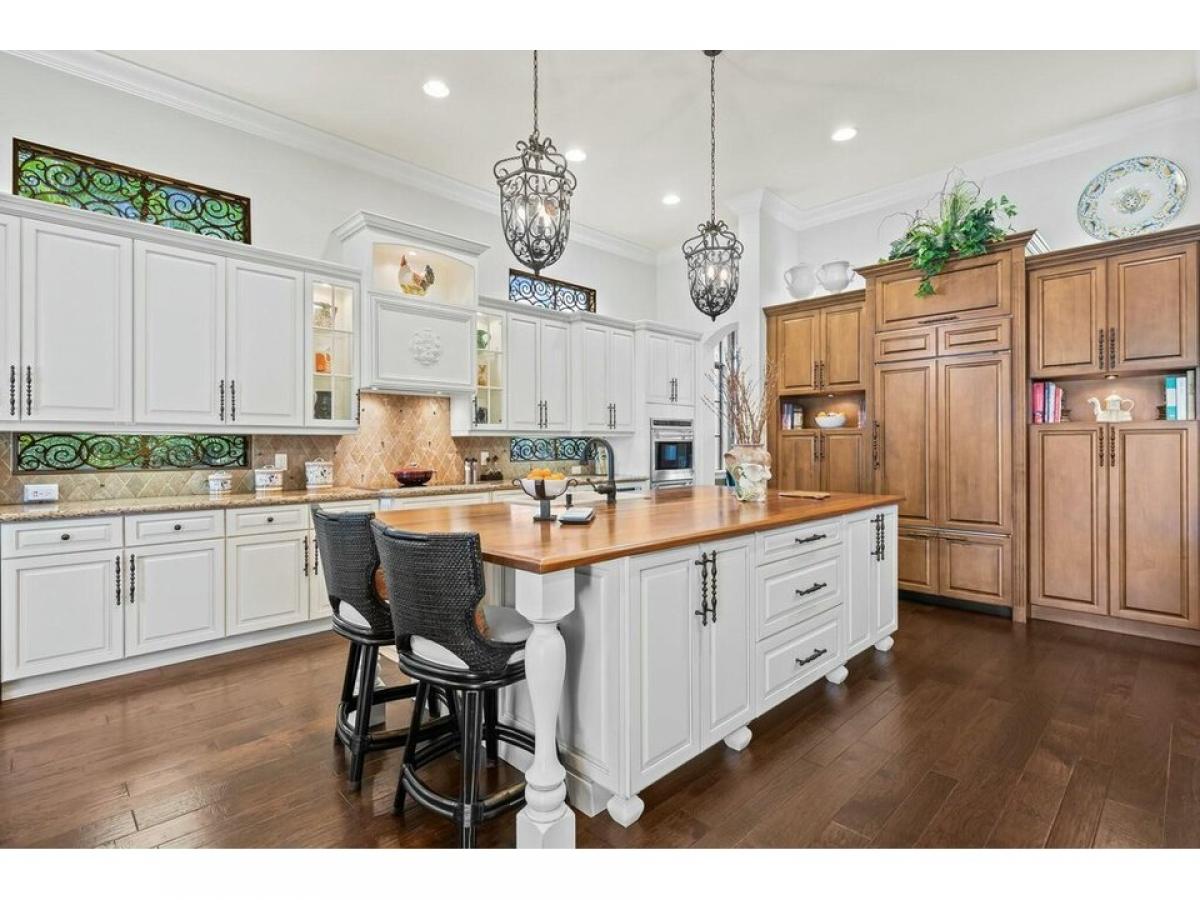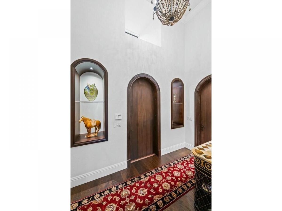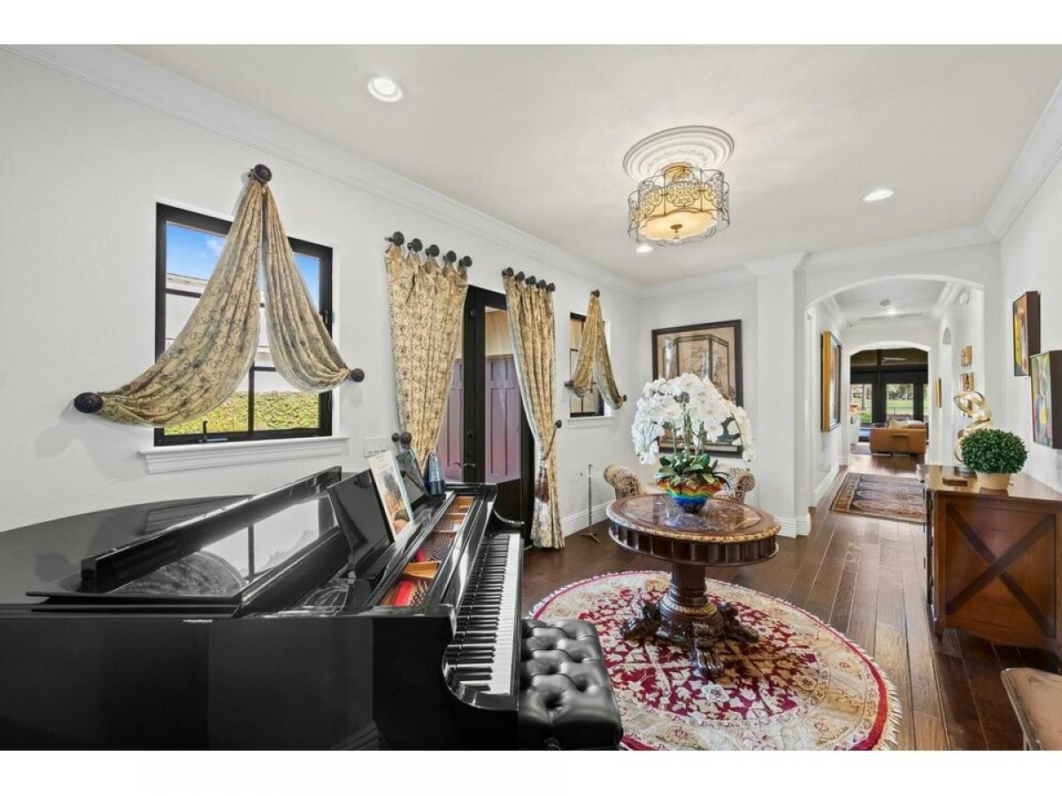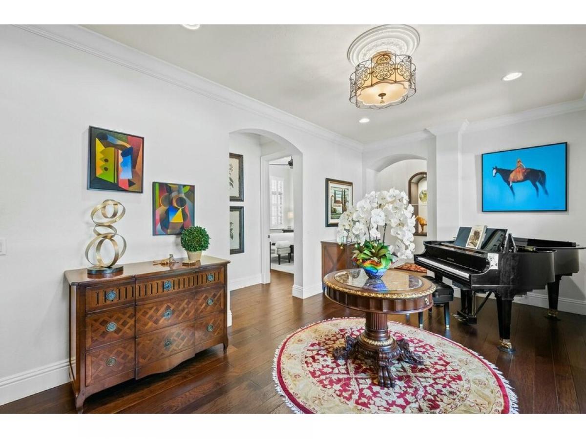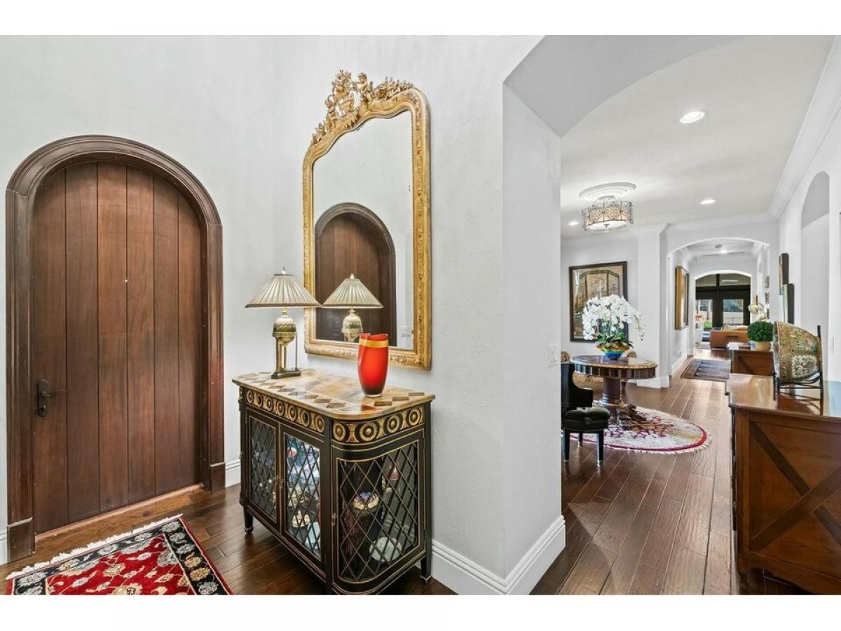 Welcome to this stunning home, located on a tranquil cul-de-sac with spectacular double fairway golf views and a spacious fenced lot. The entryway features a charming private porte-cochere and outdoor fireplace, offering a luxurious welcome. Inside, the home is beautifully renovated with elegant wood doors and flooring across the living areas, enhancing its warmth and grandeur. The gourmet kitchen is a chef#039;s dream, equipped with high-end Wolf induction cooktop and ovens, a Miele dishwasher, a SubZero refrigerator, and ample storage with pull-out drawers and a large island perfect for entertaining. This thoughtfully designed single-story open floor plan includes a guest wing at the front and an expansive primary suite at the rear, both offering delightful views of the pool amp; golf course.