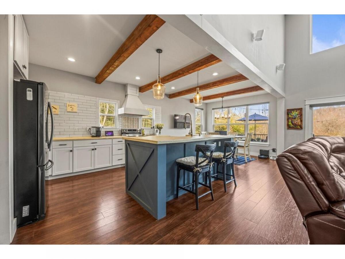 You can have it all in this luxurious newer construction home with over 3500 sqft of living space that backs up to TVA lake access! The main level is open with a living room with soaring 20ft+ ceilings and big bay windows flooding natural light in (with solar powered shades), a gourmet kitchen with a brand new stove, concrete counter tops, subway tile, custom stove vent hood, pantry, wood beams, eat in kitchen area, expansive deck perfect for gatherings, covered deck, half bathroom, laundry room, and the Master bedroom with two walk in closets and en suite featuring a walk in shower with full body massaging jets and a separate soaking tub! The second floor hosts three over sized bedrooms with a jack and jill bathroom. The top floor is a flex space currently being used as a home office and gym with its own mini split system and views of the serene backyard. Attic storage on both sides are an added bonus! The walk out basement hosts a 3 car garage and an epic man cave with epoxied concrete floors, half bathroom, bar/kitchenette complete with a refrigerator, dishwasher, sink, and wine cooler. It could easily be converted into a mother in law suite or efficiency apartment! Bring your ski jets and walk right out of your back yard door to the water where you have will TVA Lake access. The custom finishes throughout the home along with tons of windows combined with ample indoor and outdoor living space are sure to sell you on this one, come tour it today and see!