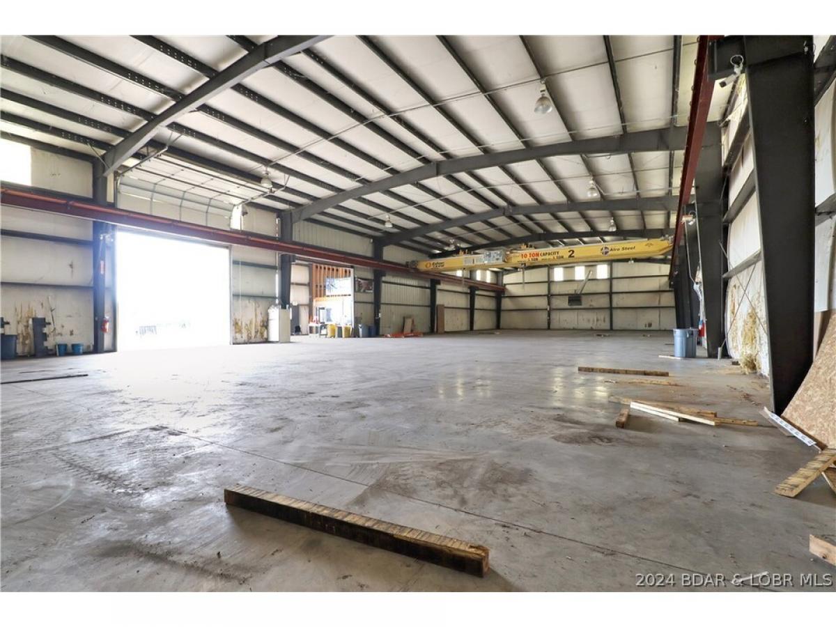 Solid built free span steel building located on a flat five acre tract in an unincorporated area of Camden County. Super close to Hwy 5 and the Camdenton airport, this building will house any number of commercial or light industrial businesses with plenty of room to expand. The adjoining 5 ac tract is also available with a 5000 sqft bldg. There are three Drive In Doors measuring 12' width X 14' Height, plus a 10 Ton bridge and a 7.5 Ton bridge. Three phase electric with 400 AMP service meets all your needs. Adequate office space has central heat and air and a 1/2 Bath. Additional features: security cameras, LED lighting, view of a serene pond. Deed restriction to be put in place restricting user or occupant for SIC 5051 (metal service centers and offices)