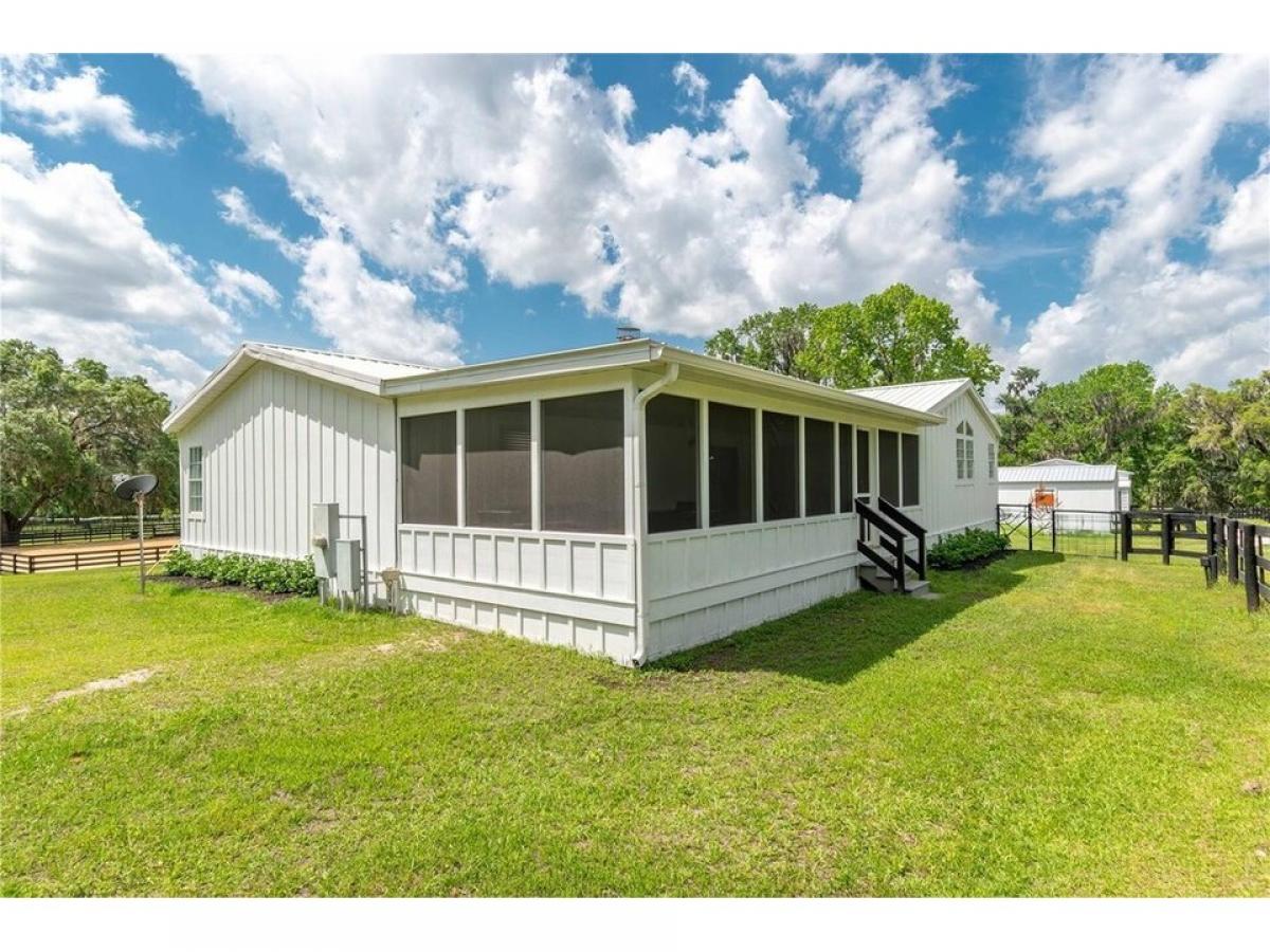A haven for equestrian living, this 19.69-acre horse farm offers a well-rounded blend of functionality, comfort, and the natural beauty of Floridarsquo;s countryside. Set against a backdrop of sweeping paddock views and majestic mature oaks, the property is fully equipped for riders of multiple disciplines and located just 19 minutes from both HITS and WEC, and 12 minutes to Sweet Dixie South. The equestrian infrastructure includes a versatile pole barn with a feed room, an arena and round pen, and classic board fencing on the multiple paddocks. A separate three-bay garage and an additional storage shed offers flexible options for equipment, vehicles, or tack. For larger equipment or further customization options, there are several covered areas on property that could be used as needed. Central on the property is a well-maintained 3-bedroom, 2-bath, 1,824-square-foot mobile home designed with comfort and ease in mind. A large, covered front porch welcomes you in, while tall vaulted ceilings and an abundance of natural light create an open, airy interior. The split-bedroom floor plan ensures privacy, and luxury vinyl flooring throughout adds durability and style. The kitchen is equipped with stainless steel appliances, extensive cabinetry, a center island for prep or gathering, and a nearby dining area perfect for meals after a day in the saddle. The living room, complete with a cozy wood-burning fireplace, is the perfect space to unwind. The primary suite features a spacious walk-in closet and a private en-suite bathroom that includes dual sinks, a garden tub, and a glass-door showermdash;ideal for relaxing after long barn days! At the rear, a fully enclosed lanai with ceiling fans and separate AC offers a serene, year-round space to enjoy the views and gentle breeze. Conveniently located between Ocala and Gainesville, this farm is well-suited for equestrians seeking a manageable property with the core amenities already in placemdash;and room to make it truly their own.