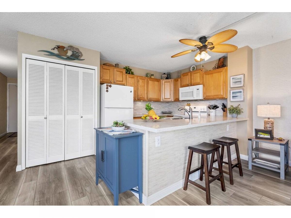 Welcome to your dream oceanfront retreat! This stunning 1-bed, 1-bath condo offers beautiful views of the sparkling Pacific Ocean. Nestled in a meticulously maintained complex, this turn-key unit provides a perfect blend of luxury amp; comfort, ideal for both relaxation and entertainment.Step into the open amp; airy living space where floor-to-ceiling windows frame breathtaking ocean vistas amp; flood the room with natural light. The recently renovated interior features luxury vinyl plank flooring, adding a touch of elegance amp; warmth. The living area is thoughtfully furnished with a cozy sofa, easy chair amp; functional desk providing plenty of space for both lounging amp; productivity.The kitchen is equipped with newer appliances and quartz countertops. A large island connects the kitchen to the living area, making it ideal for casual dining or entertaining guests while enjoying the ocean view.The bedroom is a tranquil haven, offering a serene mountain view and a comfortable king-size bed. Floor-to-ceiling windows invite refreshing ocean amp; mountain breezes.Indulge in the spa-like bathroom, where a raised ceiling enhances the sense of space amp; tranquility. The shower is adorned with beautiful basket weave tile, the ceiling fan provides an elevated experience of comfort.The highlight of the condo is an expansive covered lanai. Perfect for savoring stunning sunsets, it is furnished with dining amp; seating areas, ceiling fan amp; a large secure storage closet!The property includes one assigned parking space amp; access to exceptional amenities such as a BBQ area, heated saltwater pool amp; library.With a prime oceanfront location, luxurious finishes, and thoughtful design, this condo is the perfect Hawaii retreat. Whether you seek permanent residence, a vacation getaway, or an investment property, this oceanfront gem is ready to exceed your expectations.