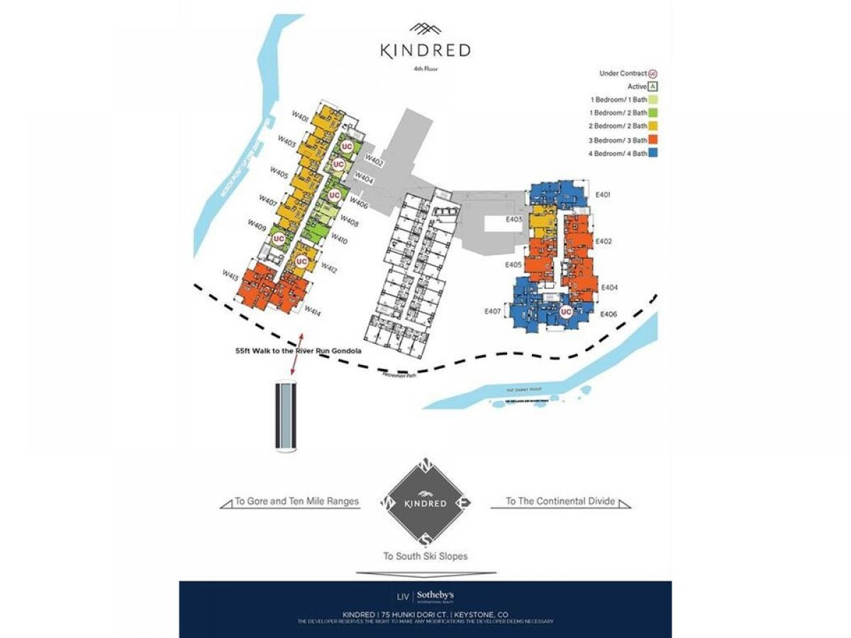 The Southern most two bedroom residence on the 4th floor of the West Tower with views toward Mountain House Ski Slopes. This Owner will enjoy sunsets in the Western sky while listening to the sounds from the North Fork of the Snake River. The spacious living area and luxury kitchen provides additional seating and comfort for up to 8 people. Kindred will be the premier ski resort development in all of Colorado bringing true ski-in/ski-out to Keystone with luxury finishes and premier amenities.