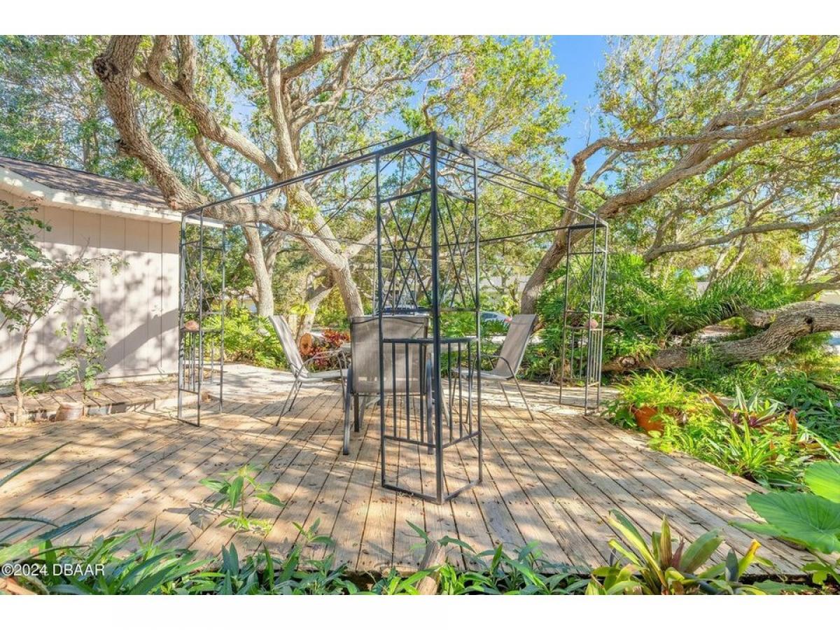 Welcome to this stunning 3-bedroom, 2-bathroom home nestled in the highly sought-after Ponce Inlet community, just moments from the ocean. From the moment you arrive, you#039;ll be captivated by the serene setting, featuring lush landscaping and majestic oak trees that provide a peaceful coastal ambiance. Step inside to discover an inviting open floor plan with vaulted ceilings and elegant tile flooring that flows throughout the home. The spacious living room is the heart of the home, perfect for entertaining or relaxing by the exquisite coquina rock wood-burning fireplace - a true statement piece that adds warmth and character. The chef#039;s kitchen has been beautifully updated to combine style and functionality. It boasts crisp white shaker cabinets, sleek granite countertops, a striking marble backsplash, a gleaming copper sink and top-of-the-line Samsung appliances complete the space, making meal preparation a delight. The primary suite is a tranquil retreat, featuring vaulted ceilings, a generously sized walk-in closet, and a fully renovated ensuite bathroom with modern finishes. The split floor plan ensures privacy, with two spacious guest bedrooms and a well-appointed guest bathroom located on the opposite side of the home. Step through the sliding glass doors in the living room to the fully fenced backyard - a perfect space for outdoor gatherings, gardening, or simply soaking up the coastal breeze. This home also includes a spacious 3-car garage, with the first bay fully equipped with air conditioning. Offering endless possibilities, this versatile space could be transformed into an additional living area or a comfortable air-conditioned workshop. Located just a short stroll from pristine beaches, the intracoastal waterway, and local dining and shopping, this home offers the ultimate Florida lifestyle. Whether you#039;re enjoying morning walks on the beach, dining at waterfront restaurants, or exploring nearby parks, everything you need is just minutes away. Don#039;t miss the opportunity to own a slice of paradise in Ponce Inlet! Schedule your private showing today. All information deemed accurate but cannot be guaranteed.