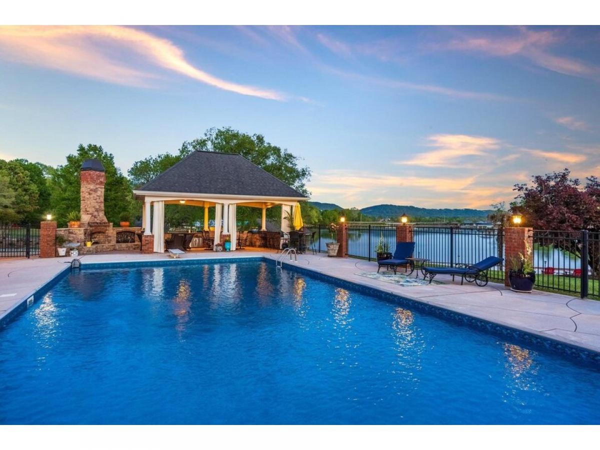 Lake Front Paradise - Prestigious Savannah Shores. Custom quality construction. Lush level 1.5 acre lot. 190 ft. of water frontage of which includes a solid brick sea wall, concrete launching ramp, custom sandy beach. Custom covered boathouse with two large boat slips with two boat lifts and jet ski lifts and storage closet. This outdoor living showplace also includes a large, covered cabana with mountain stone and tile flooring outdoor kitchen with stainless steel #039;#039;Fire Magic#039;#039; outdoor refrigerator and #039;#039;FireMagic#039;#039; outdoor grill, #039;#039;FireMagic griddle#039;#039; and sink with granite countertops that features multiplug outlets for cookout cook offs. Featuring a mountain stone outdoor fireplace a 24 x 40 foot in ground gas heated swimming pool with diving board. This all brick two-story is in impeccable condition with low maintenance decking and railings, also includes lakeside covered porch/sitting area. Family room with wood burning fireplace with gas logs and vaulted 18-foot ceilings, hardwood Wainscoting. Luxurious master suite with cathedral ceiling and master bath on main level. The master bath features separate #039;#039;Bubble Jetted#039;#039; garden tub, an extra-large doorless shower with multiple shower heads, a beautiful designer walk in closet with beautiful custom cabinets throughout the master bath. Custom designer light fixtures. Very comfortable floor plan...whereas all the rooms are large and spacious. Banquet sized dining room, Grand Foyer with 2 hardwood staircases. Gourmet kitchen with stainless appliances, gas cooktop, warming drawer, LG glass front designer refrigerator, wall oven with convection microwave, dishwasher, hardwood cabinets and granite countertops with coffee bar. Large laundry room with built-in cabinets, refrigerator/freezer, utility sink. Main level powder room, solid wood interior doors. Upper-level features: Bonus room #1 with custom built-ins as office space. 3 large bedrooms as bedroom suites. Bonus room #2 features kitchenette and built-in cabinetry and bookcases. Garden level consists of rec room/billiards room, family room/den with fireplace with gas logs, wet bar, guest bedroom #5 and #5 full bathroom, storm shelter/storage room and full bath #6 (with pool access both serving outdoor space and den wet bar area.) Extra-large 4th and 5th garage with separate side driveway, large enough for man cave garage combo. Truly a beautiful setting all around. Lakeside privacy and house is set back off the road a long distance with street scape privacy all located on a quiet cul-de-sac one street subdivision. Not only great lakefront views but views include White Oak Mountains in the distance. Excellent Ooltewah location off of charming Snowhill Road. Convenient to grocery stores with pharmacy, restaurants, charming Cambridge Square and Publix Center. Also, convenient to emergency care and medical clinics, state parks, marinas and multiplex, first-class golf courses. Too many features to mention. Boating and jet ski pleasure riding is the best. Multiple restaurants by water and even boating access to downtown Chattanooga#039;s waterfront docking capabilities.