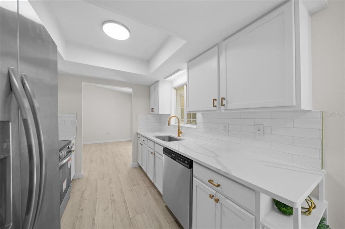 Welcome to this charming, newly renovated home in Palm Cay! Nestled at the back of the neighborhood, this 2 bedroom 2 full bath home provides comfort and style with its cool color scheme! Create culinary masterpieces in the stylish kitchen with quartz countertops and subway tile backsplash, and brand new stainless steel appliances! Take your meals in the cozy nook in the kitchen looking out the bay windows or the open plan dining room! Relax in the enclosed sunroom with a peaceful view. Primary bedroom has large walk in closet and attached en suite with new walk in shower! True split plan with guest bedroom and bath on other side of house separated by large living room with lots of natural light! Roof replaced Dec 2024, HVAC Jan 2025, new flooring Jan 2025, new counters, cabinets and appliances, fresh paint Jan 2025. This is such a pretty home, don't hesitate to schedule your showing!