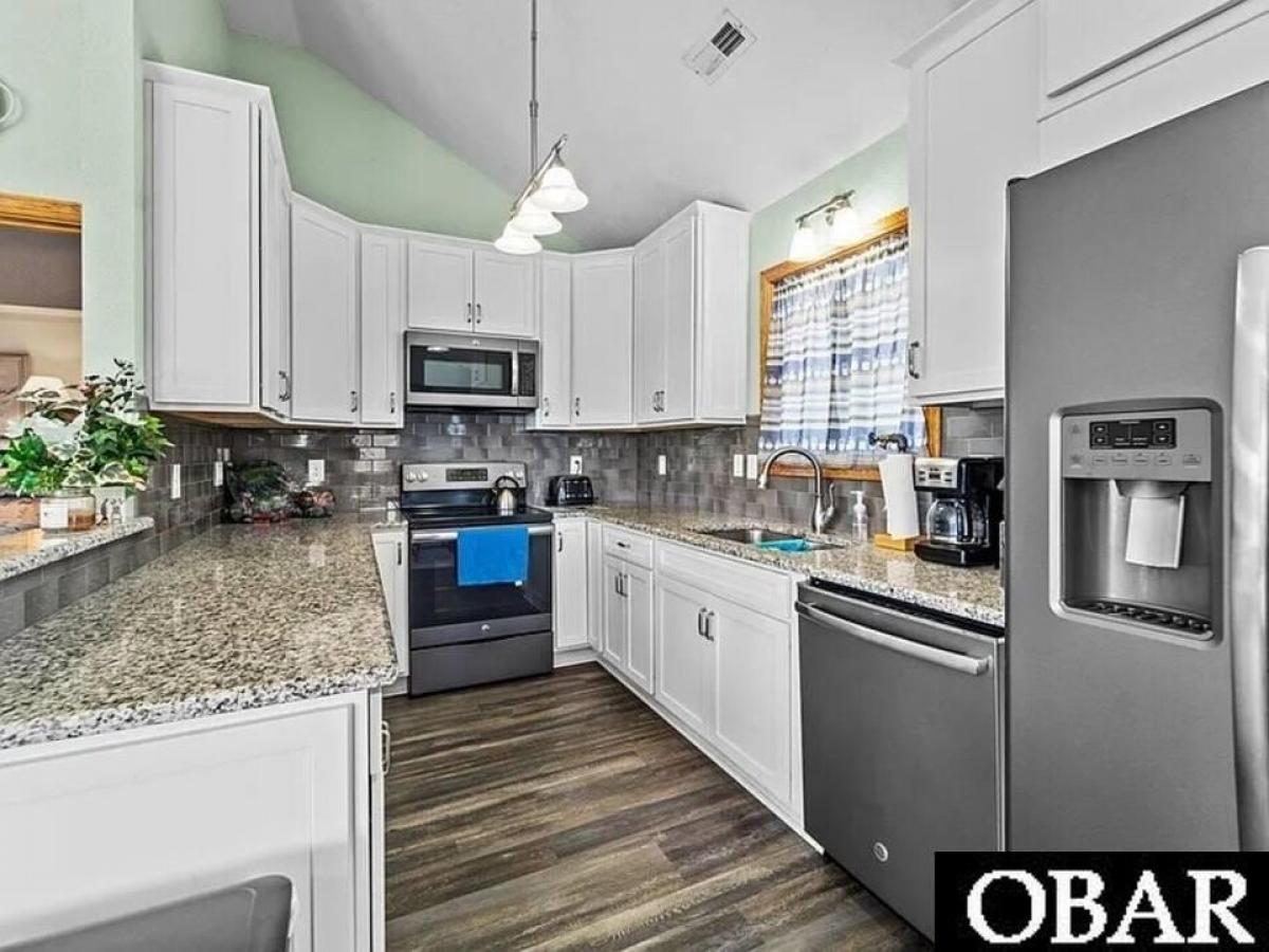 5 bedroom oceanside home near the shore with rental income over 100K This well maintained and recently updated home offers a plethora of amenities across its three levels and the beautifully landscaped yard surrounding a private pool offers refreshing swims and leisurely afternoons under the sun. Covered lounge chairs provide a shaded respite for lounging and unwinding. Outdoor seating areas ensure you can make the most of the beautiful weather. The updated living space offers lots of windows allowing natural light, the renovated kitchen has large custom cabinetry, granite countertops, and stainless steel appliances. Luxury vinyl tile in the kitchen and living area is easily maintained. The primary master bedroom on the top floor is spacious and the bath was updated with attractive finishes, wainscotting, tile floors and granite counter. The middle level offers three nicely sized bedrooms. The ground level offers a 5th bedroom, entry way, and a large rec room with a beautifully crafted custom bar. A large sliding glass door opens out to the backyard oasis. This property is well situated with some open space behind the property that gives this back yard privacy. Only a short walk to the beach and close to all the favorite Corolla attractions. New roof May 2023. New HVAC 2024 Fresh Exterior Painting also