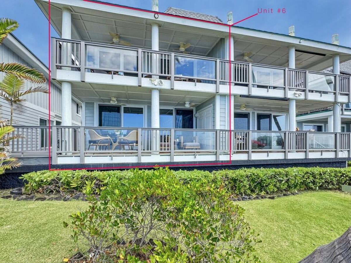 Proven income generator with strong rental history, Hale Kai O Kona #6, currently a high-performing vacation rental that books at over $900 a night.Ocean front two-story, double lanai property offers investors and lifestyle seekers a combination of personal enjoyment and passive income. Central a/c throughout and leased solar panels on net metering keep the electric bills low, keeping passive income up. Sold fully furnished, turk-key, this expansive 3 bedroom, 3 bathroom, two lanai, 2,415 square foot retreat has panoramic ocean views and resort-quality finishes. Remodeled by one of Konarsquo;s finest contractors yoursquo;ll find quartz countertops, custom top-of-the-line cabinetry, hardwood floors and a private primary suite sanctuary consisting of a spa bathroom, soaking tub, sauna, walk-in shower and panoramic ocean views. With a junior suite, a 3rd bedroom, two more bathrooms, multiple entrances into the property, and two lanai areas, live here full-time, enjoy it seasonally, or maximize the short-term rental income with high nightly rental numbers. Konarsquo;s finest ocean front property on the market. See the walk-through video here: https://player.vimeo.com/video/1046303466All information provided, while deemed reliable is not guaranteed. Buyer and Buyer#039;s Realtor to verify independently to satisfaction