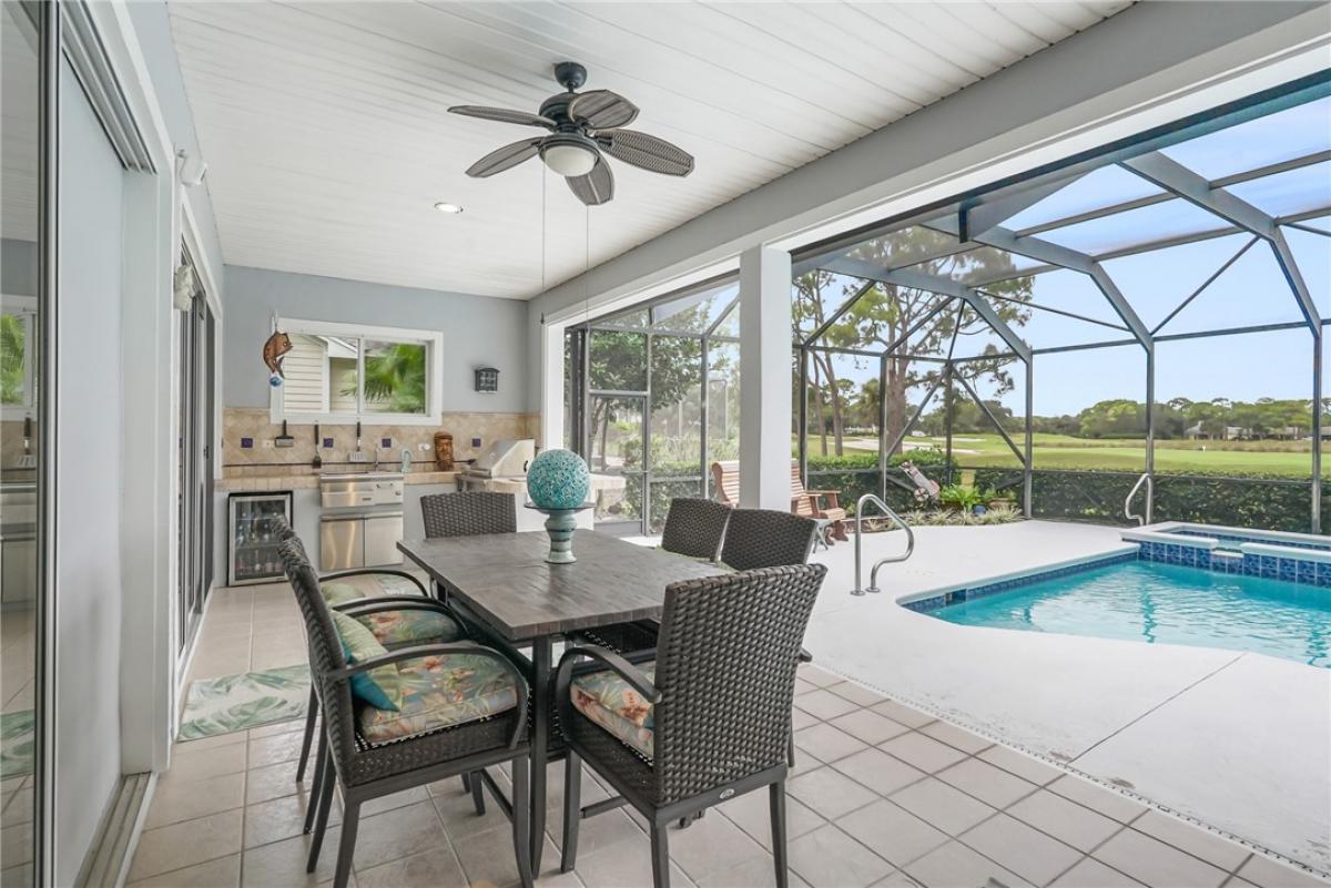 Gorgeous golf views across # 9 to # 1… AND impeccably maintained! You will love the entertaining & living space including an outdoor kitchen & covered seating area. Great size pool with swim jets for exercise & a spa. Open floor plan w. updated kitchen, baths and flooring plus a huge pantry! Ready for you to move right in & enjoy resort style living- golf, pickleball & fitness center.