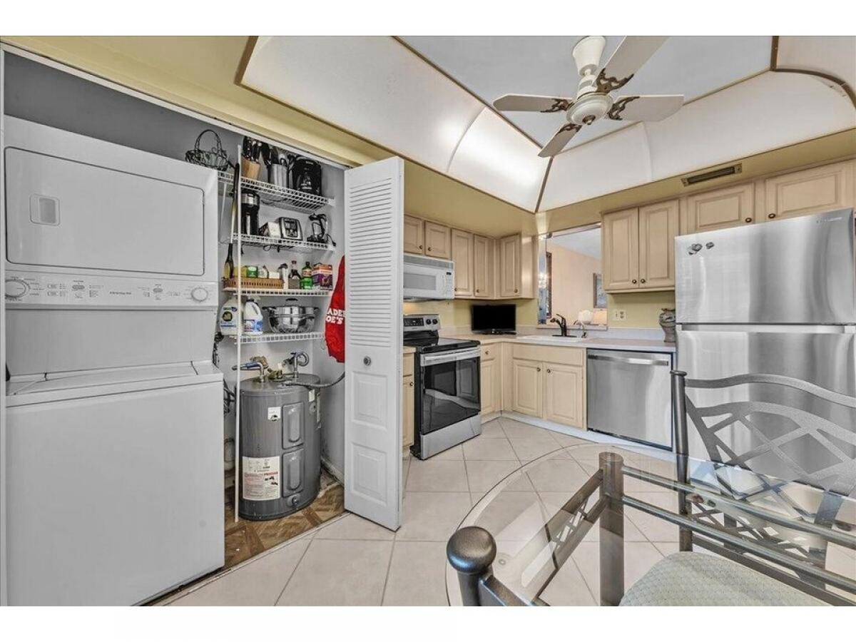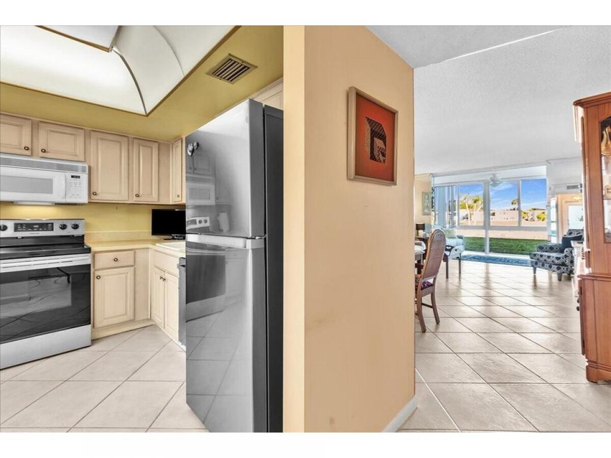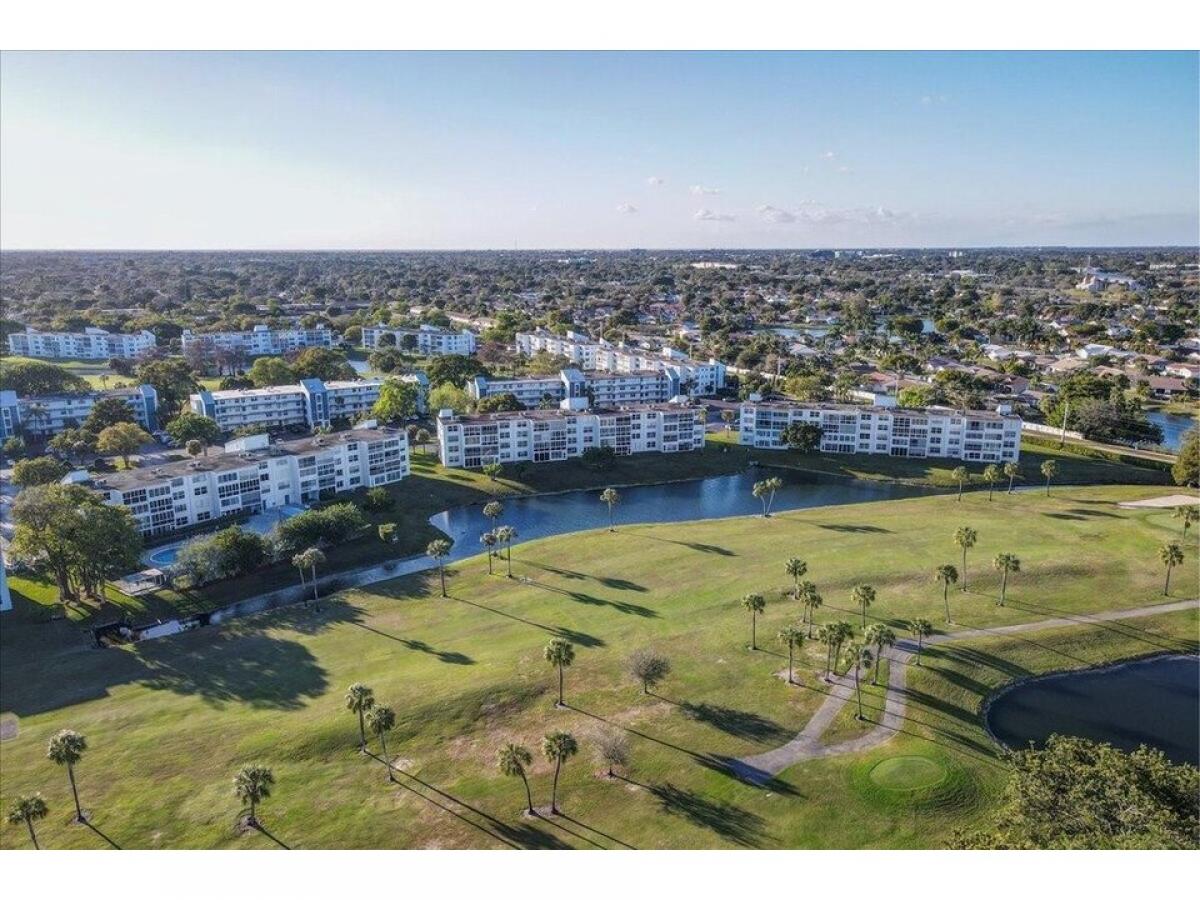 Highly sought after first floor furnished or unfurnished unit in Palm Springs 2 with beautiful views of the golf course and water. Unit boasts large tiles throughout, large eat-in kitchen, impact windows and door to rear yard, washer and dryer, large walk-in closet, 2 baths, enclosed Florida Room, parking stall in front of the unit and storage unit on 2nd floor. Short walk to the pool and clubhouse. Palm Springs 2 is a 55+ community that is situated on the Oriole Golf Course. Community features gym, library, sauna, and 2 heated pools. Association requires 675 credit score, minimum income of $32,000 and minimum of 20% down.