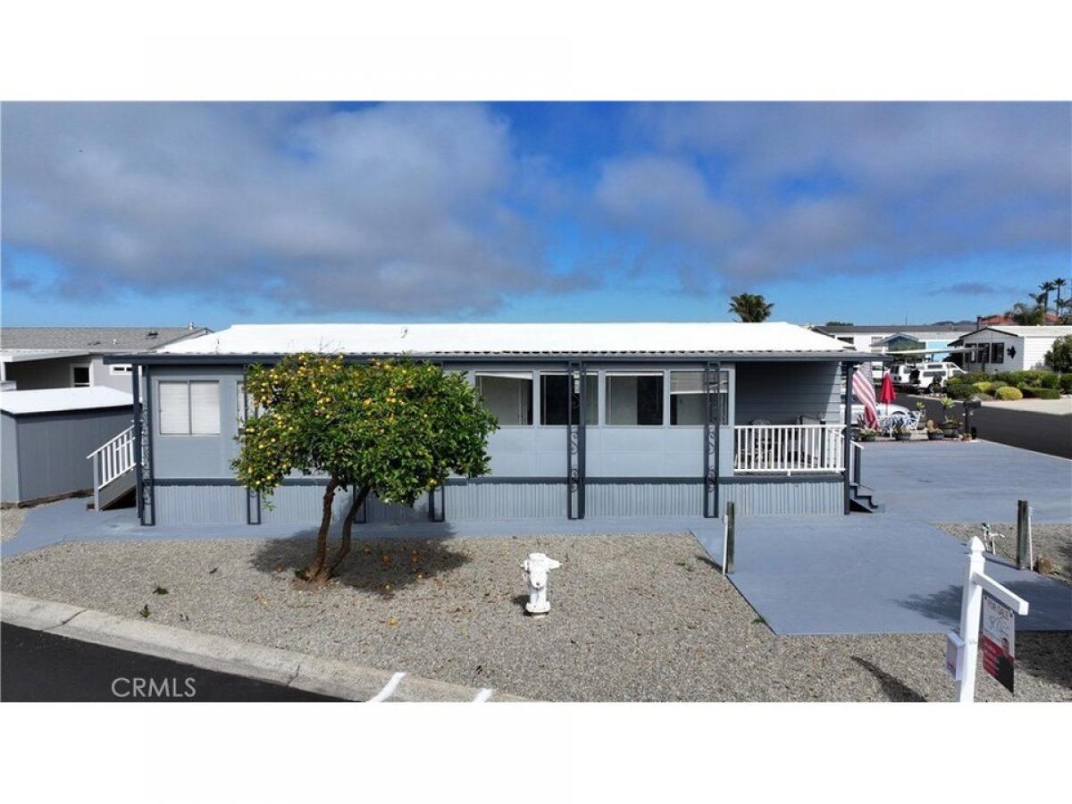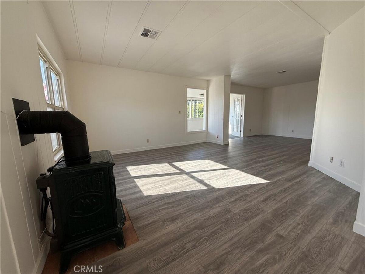 Cute as a button and sitting pretty on a corner lot! This open-concept floorplan feels light, bright and spacious. At the top of the park, this has a premium location with tons of off-street parking and yard space. New flooring, new paint inside and out, roof recently re-sealed and with bonus features like thermostat-regulated fireplace/stove and enclosed porch perfect for additional living space, exercise space, den or office. Indoor laundry just off the kitchen. New tile floor in the guest bath. Lemon tree and mature hedges to buffer views from the street. Park features many amenities like swimming pools, park/play areas, and optional RV storage.