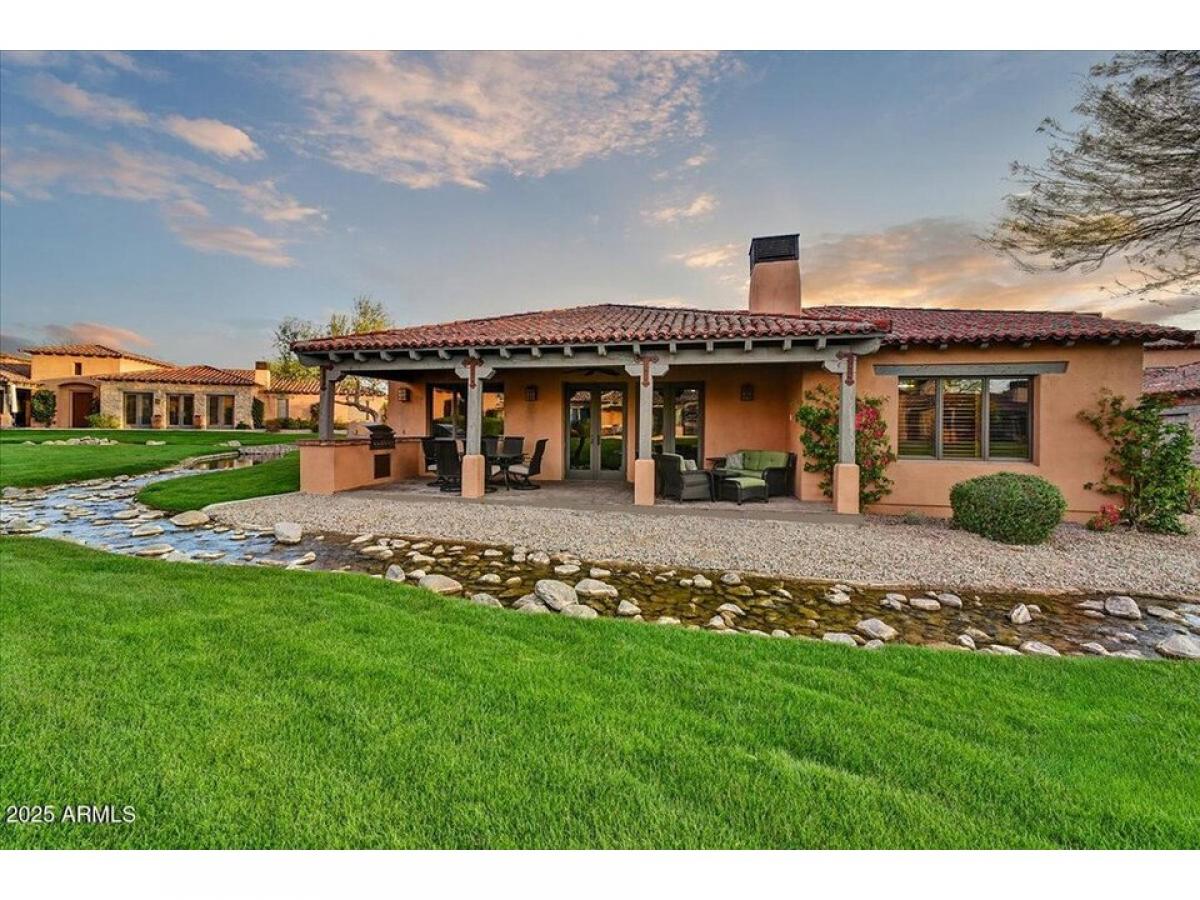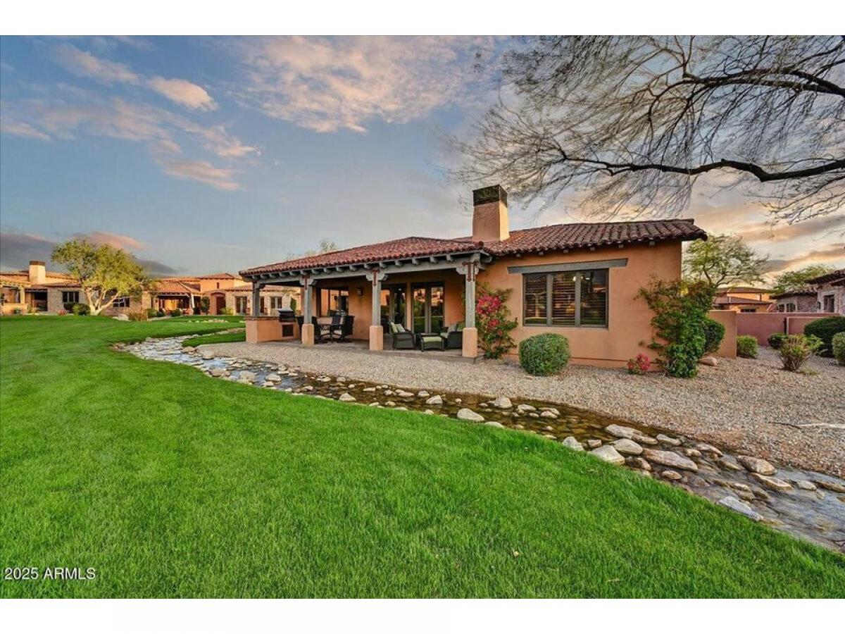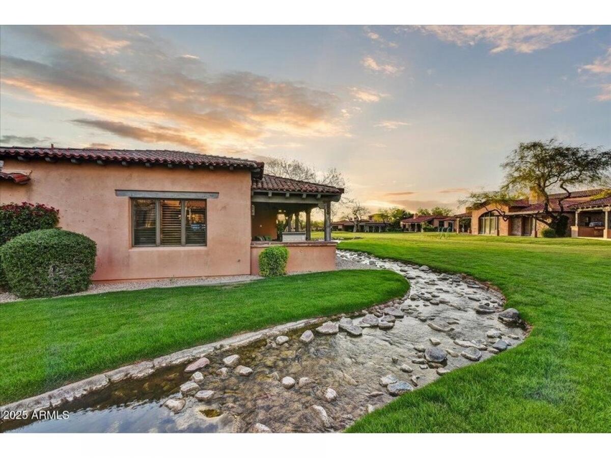 Experience luxurious living offered TURNKEY FURNISHED, (artwork amp; personal items do not convey) in this stunning, Tuscan-style villa located in the highly sought-after Golden Eagle Village, nestled within the prestigious, guard-gated community of Superstition Mountain Golf amp; Country Club. This exceptional lock-and-leave property offers one of the most tranquil and picturesque settings in the community. Step outside to your serene backyard oasis, where the soothing sound of a running brook meets a lush, grassy park, framed by breathtaking sunset views over the Superstition Mountains. This one-of-a-kind ambiance truly sets the stage for a remarkable lifestyle. Inside, you#039;ll find 3 bedrooms amp; 3 bathrooms. The spacious living area boasts 12 foot ceilings with rustic wood beams, a striking stone gas fireplace, and French doors leading to a private patio equipped with a built-in gas BBQ. The gourmet kitchen features granite countertops, under-cabinet lighting, an oversized island, and high-end finishes throughout. Additional highlights include plantation shutters, automated window blinds in the living area, 8-foot solid core Alder doors, and custom built-in cabinetry with a desk and Murphy bed, perfect for a versatile office space. Completing the home is a 2-car garage with storage and access to world-class amenities. Enjoy the private 36-hole golf club with Jack Nicklaus-designed championship courses, a state-of-the-art clubhouse, fitness center, heated swimming pool, and recreational courts for tennis, pickleball, and basketball, plus a dog park. (Golf membership sold separately.) Don#039;t miss this unique opportunity to own a slice of paradise in Superstition Mountain Golf amp; Country Club!