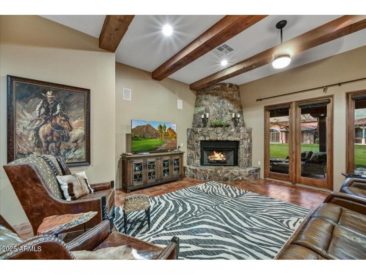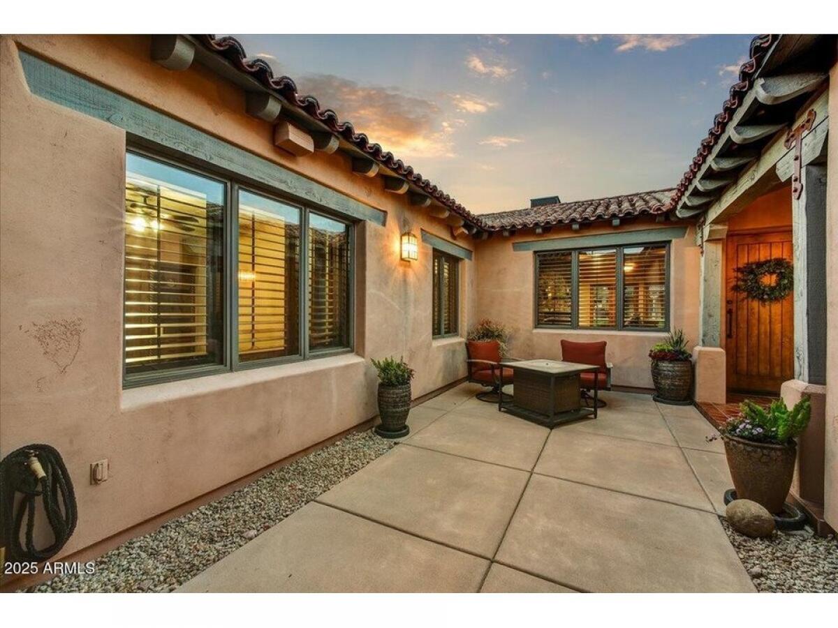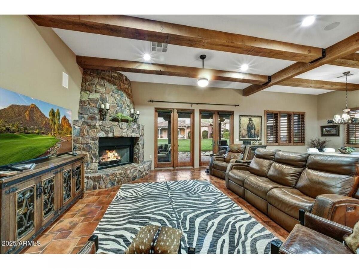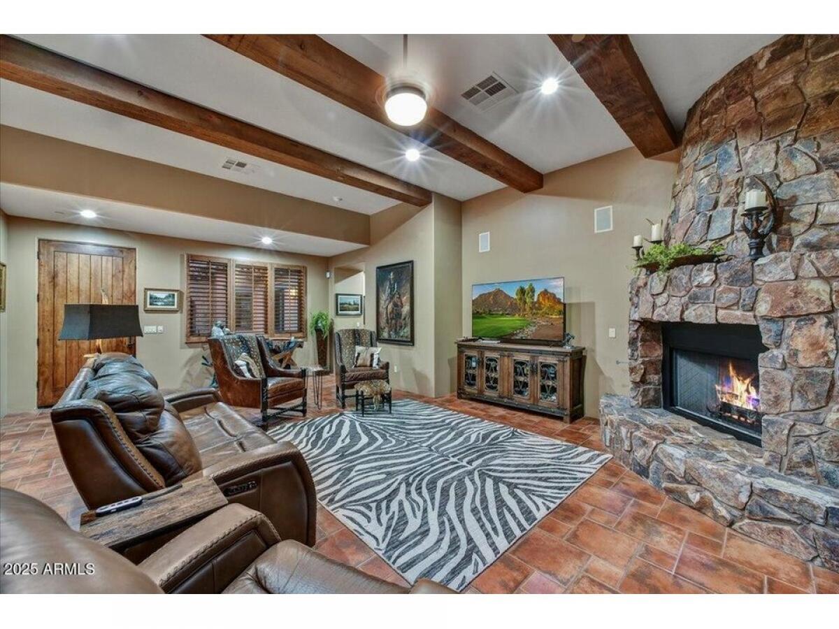 Experience luxurious living offered TURNKEY FURNISHED, (artwork amp; personal items do not convey) in this stunning, Tuscan-style villa located in the highly sought-after Golden Eagle Village, nestled within the prestigious, guard-gated community of Superstition Mountain Golf amp; Country Club. This exceptional lock-and-leave property offers one of the most tranquil and picturesque settings in the community. Step outside to your serene backyard oasis, where the soothing sound of a running brook meets a lush, grassy park, framed by breathtaking sunset views over the Superstition Mountains. This one-of-a-kind ambiance truly sets the stage for a remarkable lifestyle. Inside, you#039;ll find 3 bedrooms amp; 3 bathrooms. The spacious living area boasts 12 foot ceilings with rustic wood beams, a striking stone gas fireplace, and French doors leading to a private patio equipped with a built-in gas BBQ. The gourmet kitchen features granite countertops, under-cabinet lighting, an oversized island, and high-end finishes throughout. Additional highlights include plantation shutters, automated window blinds in the living area, 8-foot solid core Alder doors, and custom built-in cabinetry with a desk and Murphy bed, perfect for a versatile office space. Completing the home is a 2-car garage with storage and access to world-class amenities. Enjoy the private 36-hole golf club with Jack Nicklaus-designed championship courses, a state-of-the-art clubhouse, fitness center, heated swimming pool, and recreational courts for tennis, pickleball, and basketball, plus a dog park. (Golf membership sold separately.) Don#039;t miss this unique opportunity to own a slice of paradise in Superstition Mountain Golf amp; Country Club!