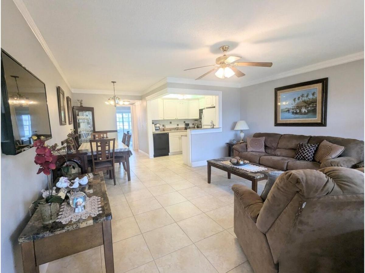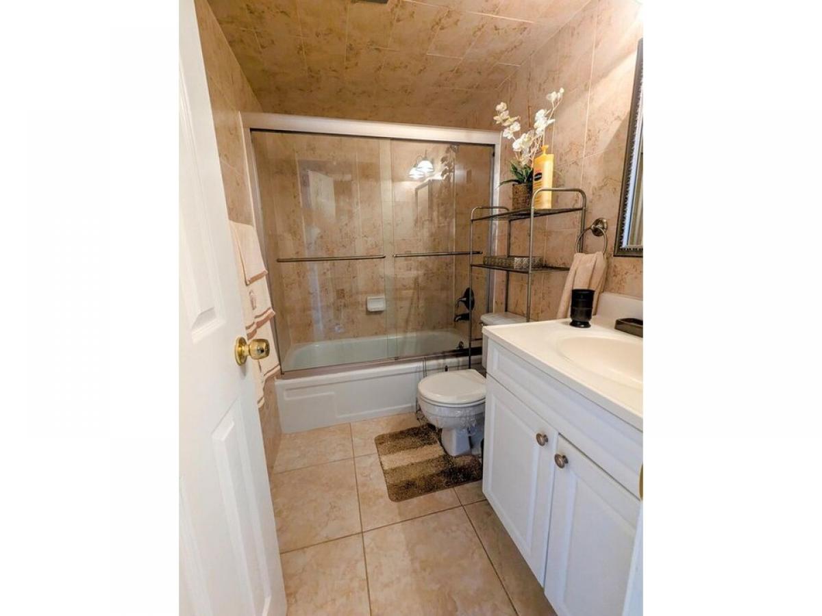 2nd Floor with a Lift! Gorgeous, Renovated 1 Bedroom with Impact Windows, Open Kitchen, Crown Molding and Tile Floors throughout. Renovated Tiled Bathroom. Sold AS-IS and Furnished. Furniture is High Quality and like new. (3 years,seasonal use). The enclosed Balcony offers additional living space with a new AC unit. This is a Friendly Community, conveniently located near the Somerset Pool, and short distance to either entrance Gate and the Clubhouse. Century Village is a 55+ Gated Community with pools, tennis, pickleball, shuffleboard, clubs to join, as well as a Theater with Entertainment. Courtesy transportation to local shops also provided. Come live your best life! Located close to shops, restaurants, beaches amp; PBI Airport minutes away.