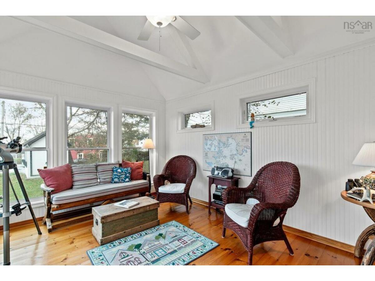 Chester classic in a prime central location with an elevated glimpse of the front harbour, Tancook islands and Mahone Bay. The 7,535 square foot double lot features a privacy hedge with landscaped front lawn, raised flower beds, utility shed and a courtyard deck as the focal point. Built in 1903, the 1976 square feet of living space has been renovated and expanded over the last two decades into a comfortable four bedroom, two-and-a-half-bathroom residence. The main floor is conveniently laid out with the spacious kitchen splitting the living family room area on one side and the dining and sunroom on the other. Features include a cathedral ceiling in the sunroom, and a wood burning fireplace in the living room. A second floor consisting of four bedrooms including a primary with an ensuite bathroom, cathedral ceiling and a laundry room. Several Steffes Electric Thermal Storage heating units and an air exchanger, keep this home cozy all year round. As well as a dug well, there are additional cisterns under the deck, ensuring an abundant water supply. Come celebrate life in Chester where everything is possible, including fine art at the Captains House Gallery, theatre at the Chester Playhouse, dockside seafood chowder at the Rope Loft, lattes at the Kiwi Caf, fine dining at the Sunroom, sailing at the Chester Yacht Club, tall tales at the Focsle Tavern and sports at the Chester Tennis & Golf Clubs.