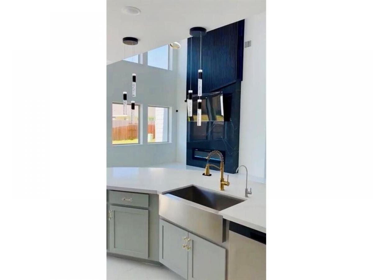 Step into luxury at this stunningly upgraded home nestled in the heart of Pasadena. Walton II floor plan, this architectural gem masterfully blends timeless sophistication with high-end modern touches. You#039;ll be captivated by the soaring ceilings, glossy white porcelain tile floors, and an abundance of natural light that floods through grand two-story windows. The designer fireplace wall is a bold statement piece, featuring sleek black vertical paneling, marble accents, a built-in electric fireplace, perfect for elevated entertaining or cozy movie nights. The gourmet kitchen, showcases quartz countertops, crystal hardware, farmhouse sink paired with a luxe gold spring faucet. Sophisticated pendant lighting and modern LED fixtures throughout the home add elegance and flair. The owner#039;s suite includes a large soaking tub, frameless glass shower, and dual vanities with backlit mirrors and contemporary gold fixtures. This home truly stands out! Professional photos coming soon.