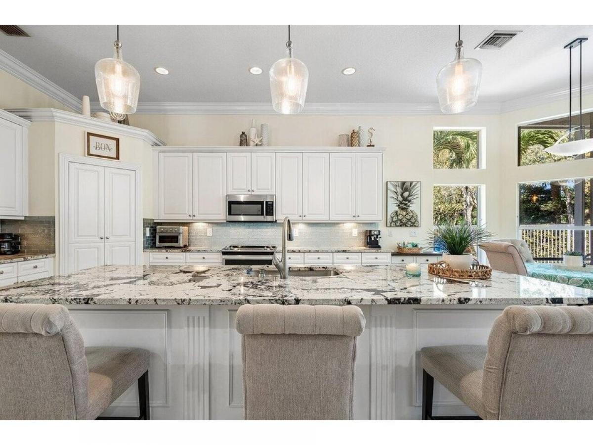 Beautiful 3 Bedroom Pool Home on a Tremendous Pie Lot in Valencia Shores. The Home has Accordion Shutters on the Whole Home. Entering the Incredibly Light amp; Bright Home You will Notice Volume Ceilings with Crown Molding. The Gorgeous Renovated Kitchen Includes Custom Granite Counters, Subway Tile Backsplash, White Wood Cabinets amp; Stainless Steel Appliances. Out Back Travertine Pavers leads to a Screened Patio Overlooking Your Relaxing Heated Plunge Pool. The Home Sits on a Massive Pie lit with Incredible Privacy. The Large Primary Bedroom Includes 2 Walk-In Closets amp; a Luxurious Primary Bath with Dual Sinks and Separate Vanities. There are 2 Guest Rooms Including One with a Custom Home Office with Wood Floors. There is Even a Battery Back Up System for the Electricity too . Don#039;t Miss It!