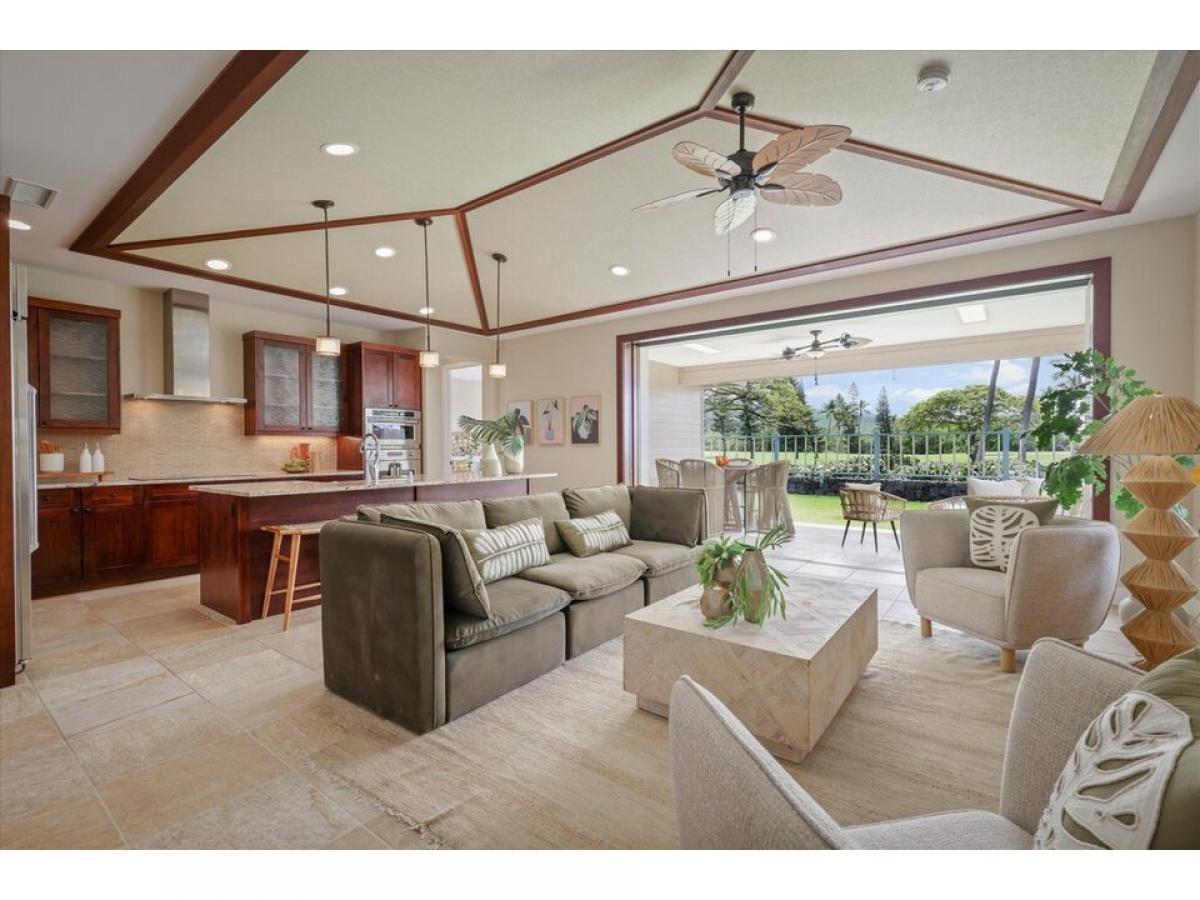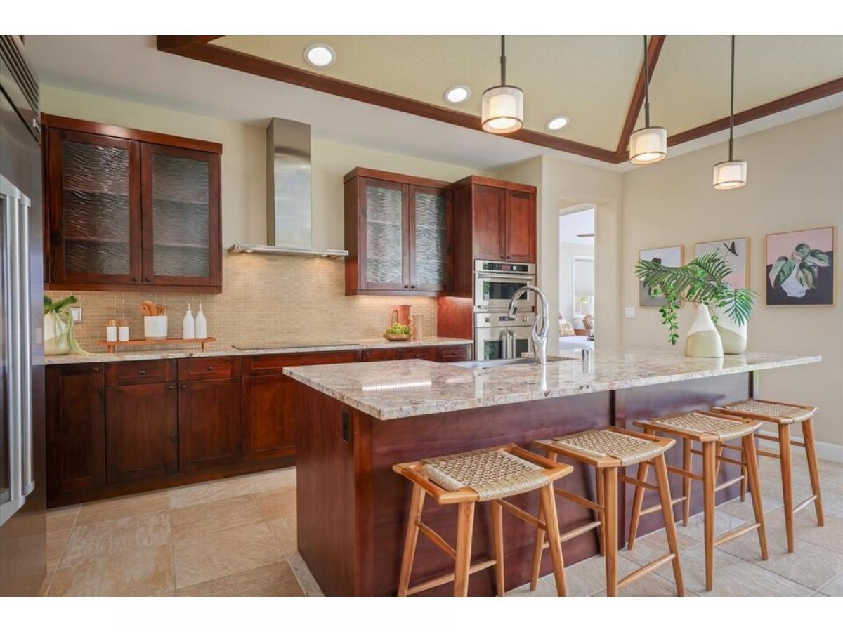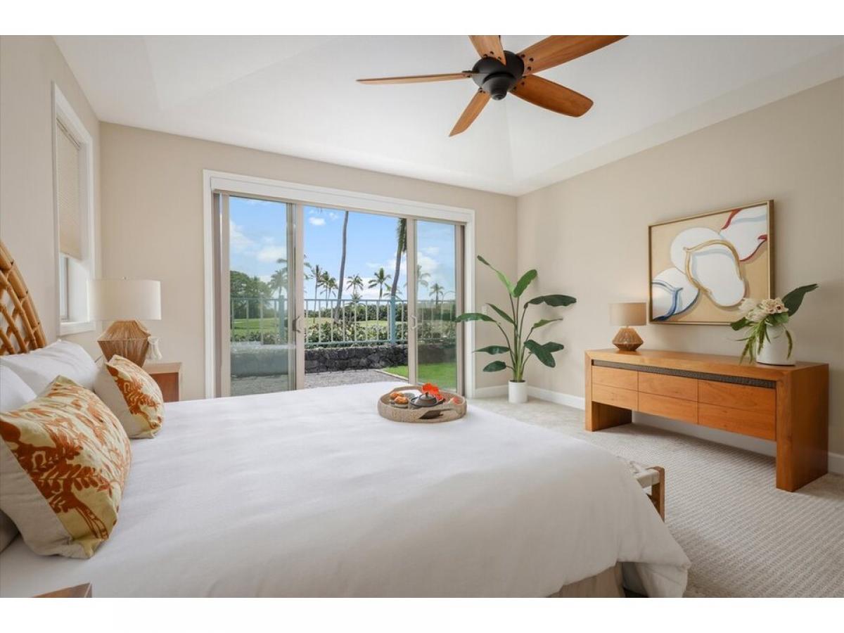 Welcome ! Desirable resort zoned golf fairway home. Holua Kai at Keauhou is a popular vacation rental destination!Better than new 3-bedroom, 2.5 bathroom home spans 1888 square feet with additional covered back lanai space, and attached 2 car garage. Enter and you are in the beautiful open floor plan that connects indoor to outdoor living, enhanced by pocket sliding glass doors revealing beautifully maintained golf course and mountain views.Resort-style tray ceilings, stone flooring, and custom window coverings complement the layout. The heart of the home is the well-designed kitchen, with solid granite countertops, top of the line GE Monogram stainless steel appliances, induction cooktop, and additional island bar seating.The primary suite, a haven of relaxation featuring a spa-like bathroom with a luxurious soaking tub, beautifully tiled shower, spacious walk-in closet, and private water closet. It is situated on the opposite side of the home for additional privacy. Screened sliding glass doors open right up to your golf course amp; mountain view.Upgraded features include a whole house water conditioning system, and newer high efficiency central A/C . Fully owned photovoltaic panels allow the tropical sun to supplement your utility costs. Easy care yard with tropical plantings, mango tree, and fully fenced for additional privacy. Attached 2 car garage with additional 2 car parking in the spacious driveway is not featured in all units. A great location, Rim lot, golf course view, close to pool pavillion.Experience Hawaii lifestyle in this casually elegant resort home. Zoning and desirability of Holualoa Kai as a prime vacation destination allows investment choices for you as an owner. Just minutes away from Keauhou Bay and Keauhou Shopping Center, surfing, paddleboarding, outrigger activities, Kona Country Club access, pickleball, tennis, and.. Manta Ray Dives, Magic Sands Beach, hiking trails, and cultural activities.