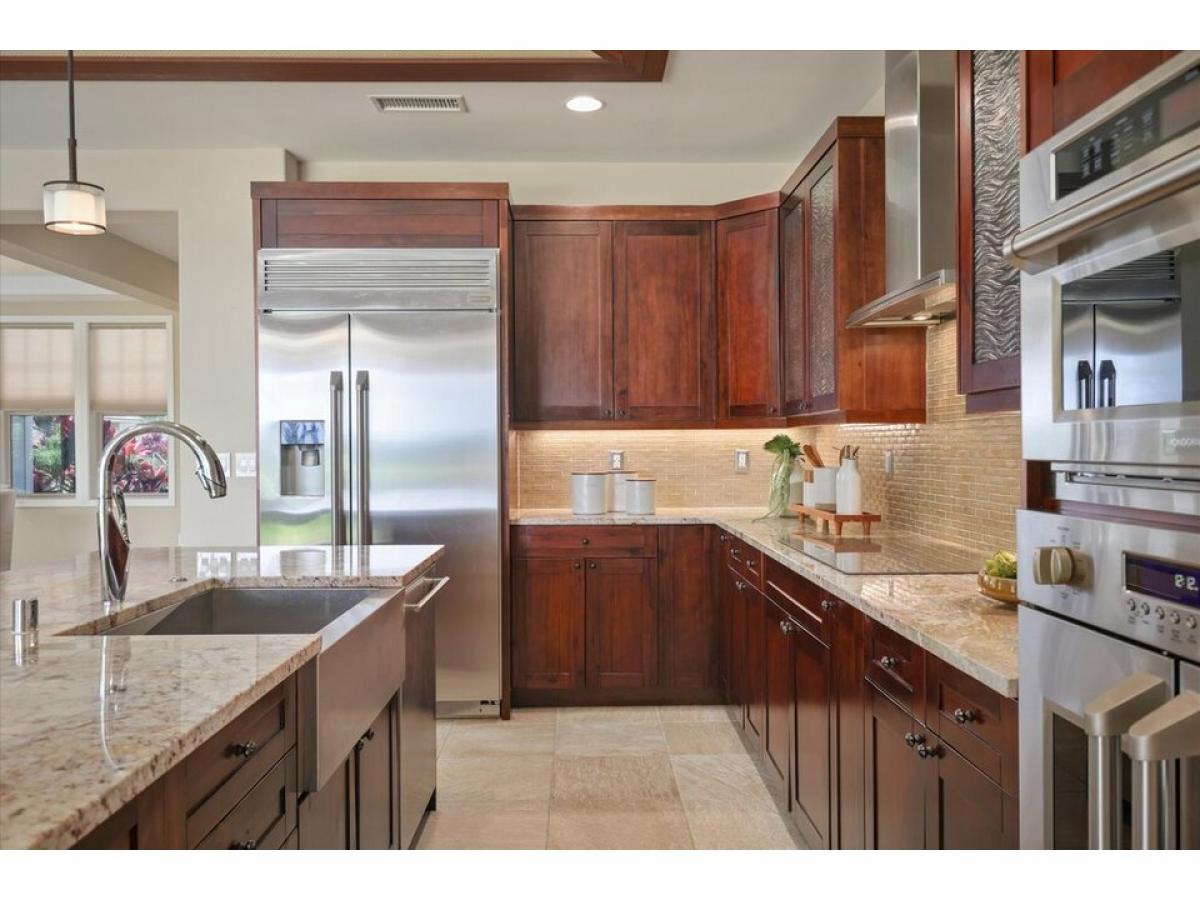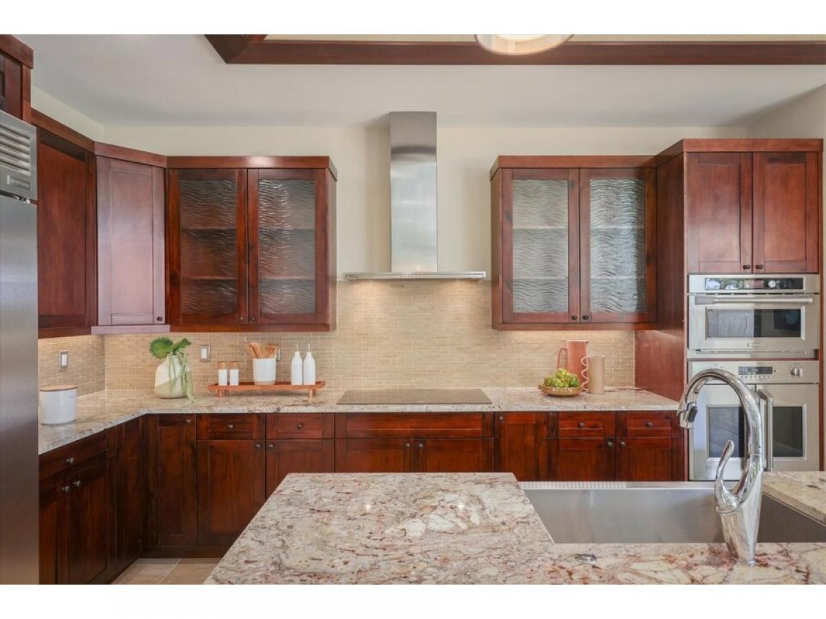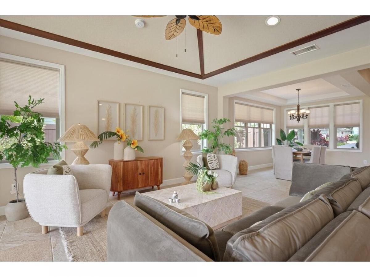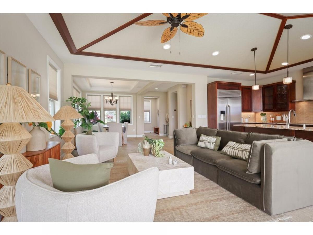 Welcome ! Desirable resort zoned golf fairway home. Holua Kai at Keauhou is a popular vacation rental destination!Better than new 3-bedroom, 2.5 bathroom home spans 1888 square feet with additional covered back lanai space, and attached 2 car garage. Enter and you are in the beautiful open floor plan that connects indoor to outdoor living, enhanced by pocket sliding glass doors revealing beautifully maintained golf course and mountain views.Resort-style tray ceilings, stone flooring, and custom window coverings complement the layout. The heart of the home is the well-designed kitchen, with solid granite countertops, top of the line GE Monogram stainless steel appliances, induction cooktop, and additional island bar seating.The primary suite, a haven of relaxation featuring a spa-like bathroom with a luxurious soaking tub, beautifully tiled shower, spacious walk-in closet, and private water closet. It is situated on the opposite side of the home for additional privacy. Screened sliding glass doors open right up to your golf course amp; mountain view.Upgraded features include a whole house water conditioning system, and newer high efficiency central A/C . Fully owned photovoltaic panels allow the tropical sun to supplement your utility costs. Easy care yard with tropical plantings, mango tree, and fully fenced for additional privacy. Attached 2 car garage with additional 2 car parking in the spacious driveway is not featured in all units. A great location, Rim lot, golf course view, close to pool pavillion.Experience Hawaii lifestyle in this casually elegant resort home. Zoning and desirability of Holualoa Kai as a prime vacation destination allows investment choices for you as an owner. Just minutes away from Keauhou Bay and Keauhou Shopping Center, surfing, paddleboarding, outrigger activities, Kona Country Club access, pickleball, tennis, and.. Manta Ray Dives, Magic Sands Beach, hiking trails, and cultural activities.
