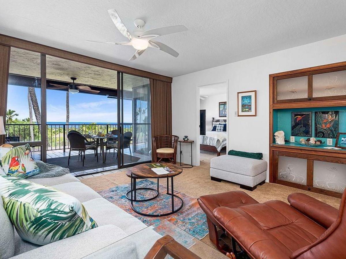 Go Stairless! Enjoy the great views and amenities at Country Club Villas without having to climb even one stair! This Bridge Unit is move-in ready, and makes a great second home or short-term vacation rental. The unit is being sold fully furnished. Just bring your suitcase and move in! Some of the features of the unit include: -- New full-size stacked washer and dryer -- Granite counter tops -- Remodeled bathrooms -- Custom blinds - Because of the location of the unit at the north end of the complex, the unit boasts a lot of natural light with a special view overlooking the 17th hole of the Kona Country Club golf course. You will have hours of enjoyment watching the golfers tee off and try to hit the green! And you can look over the golf course to the ocean and the everchanging sunsets. You have easy access to the tennis courts, but you are not so close that you hear the balls hit. And you have easy access to the heated north pool so you can slip out at night for that hot tub experience. And remember, no stairs to climb but a great view! The Country Club Villas amenities are second to none, with three pools and hot tubs, as well as tennis and pickleball courts. Country Club Villas also features an on-site manager and well-manicured landscaping. Golf is right next door at Kona Country Club. Close to the beaches at Kahaluu and Magic Sands as well as water sports at Keauhou Bay. Easy access to Kealakekua, Honaunau and Captain Cook via the Alii Bypass Road. Shopping, lots of great restaurants, and the movies are within walking distance at Keauhou Shopping Center.