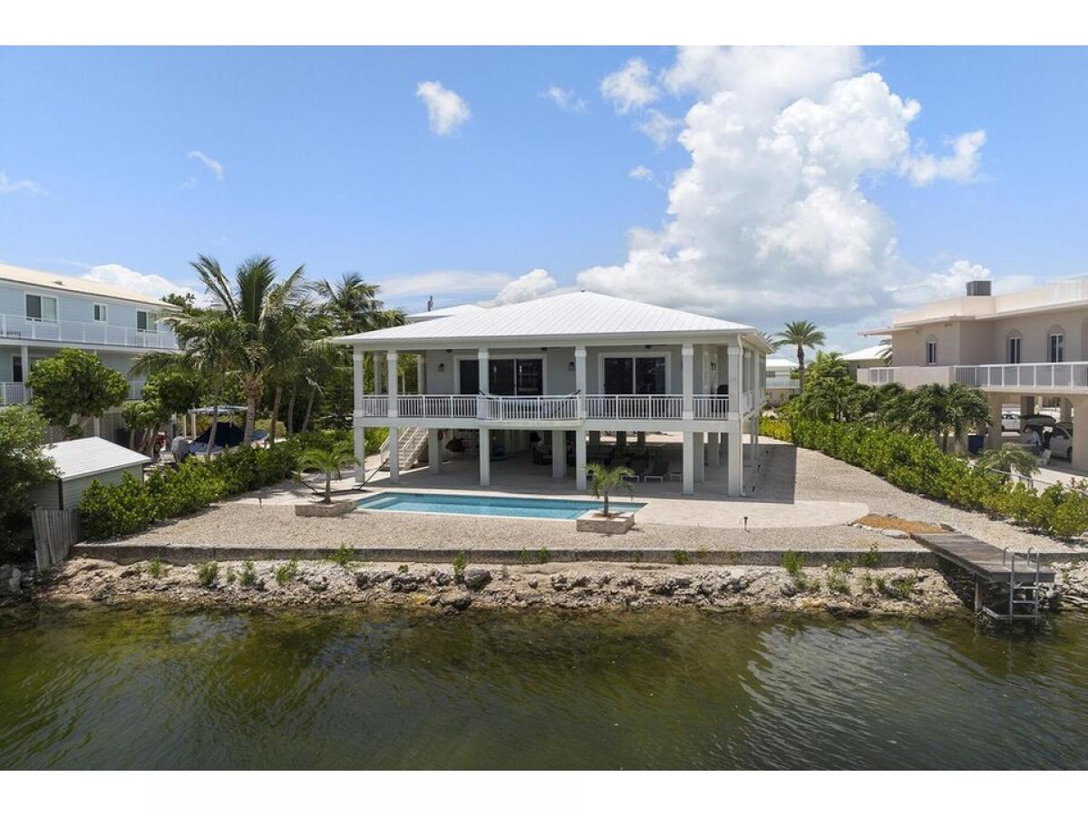 Experience the perfect blend of modern design and island-inspired luxury with this stunning home, situated on a generous 13,607 sq. ft. lot in Buccaneer Point Estates. Come enjoy waterfront living on a tranquil lake featuring an in-ground swimming pool with the added benefits of solid concrete block construction, a durable metal roof, along with impact-resistant windows and doors throughout.This home features 3 bedrooms, 2 full baths, and 2 half baths, all within a spacious open-concept layout. High 10#039; ceilings and 8#039; doors contribute to a bright and airy atmosphere, while custom trim details add a refined touch. The well-appointed kitchen includes custom cabinetry, Quartzite countertops, a stone accent wall, stainless steel appliances, a gas range, and under-cabinet lighting.Additional highlights include walk-in closets with built-in shelving, plantation shutters, porcelain flooring, and designer lighting fixtures. The property also offers tiled terraces and stairs for easy indoor-outdoor living, a functional laundry room, ground-floor storage, and pre-wiring for security and surround sound. This home combines comfort and sophistication, offering a refined living experience.