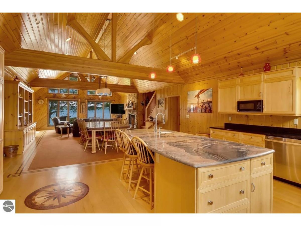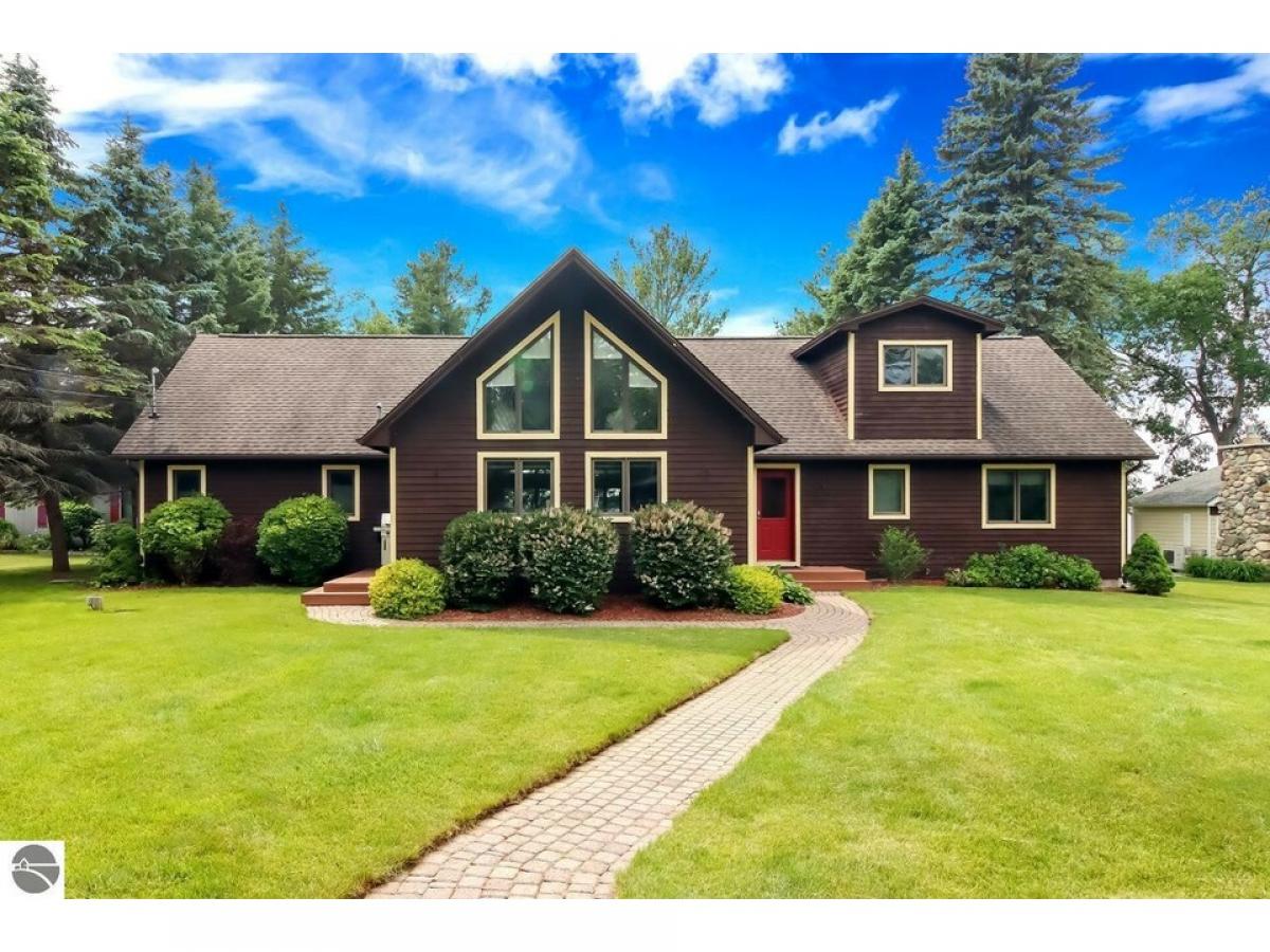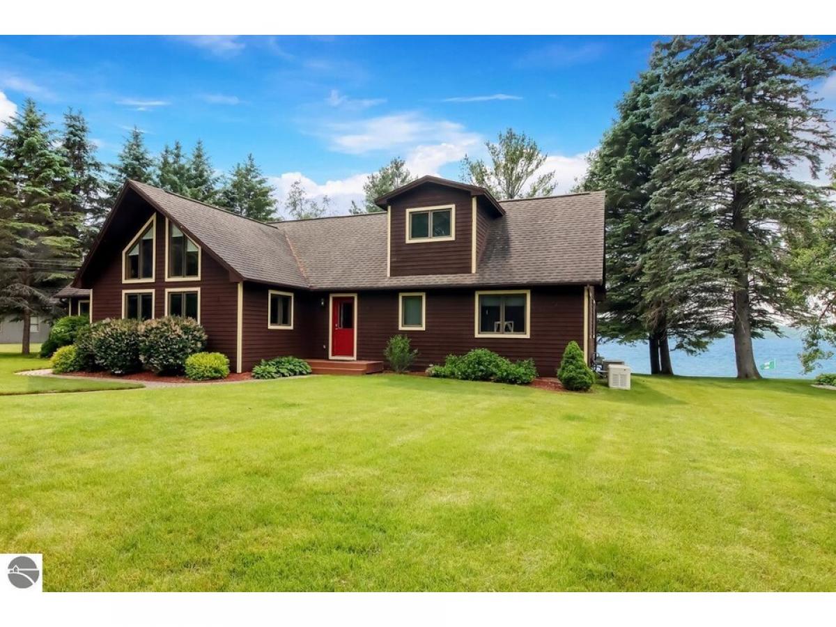 Enjoy Up North waterfront living from your private 109’ on the crystal clear waters of Torch Lake. This spacious 3,100 sq ft Torch Lake home offers everything you need for year round living or a get-a-way retreat. Enter into the open concept living area with vaulted ceilings, beautiful knotty pine interior, wood burning stone fireplace, built in bookcases and maple floors. The remodeled kitchen is enhanced by a one of a kind island with stone from Italy. With a total of five bedrooms and two and a half baths, you’ll have plenty of space for friends and family. Three main floor bedrooms lead directly to waterfront decks, perfect for a morning cup of coffee or relaxing evening watching the sun set. You’ll love cozying up by the wood burning stove in the primary bedroom, which also has a new walk in shower and walk in closet. One more bedroom with laundry in the closet and a full bath round out the main floor. Upstairs you’ll find a fifth bedroom and a 3/4 bath. You’ll love outdoor entertaining on the two large decks overlooking your beautiful frontage. Relax in hot tub after a long day out on the lake or sit in your personal lakeside sauna! The lake drawn irrigation system will help you maintain the landscaping that accents the homes cedar exterior. You will be ready for any weather with forced air A/C, 2”x6” walls, and a natural gas generator. House comes turn key fully furnished.