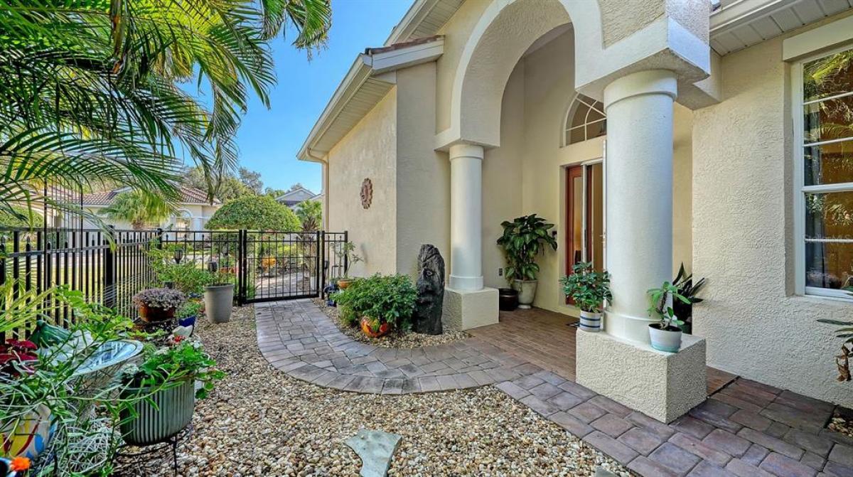 Discover the perfect blend of style and function in this 2-bedroom, 2-bath home located in the gated enclave of Palm Lakes in Sarasota. With 1,464 square feet of living space, this home offers an open and welcoming layout ideal for both relaxation and everyday living. The home has a fenced courtyard entrance leading to a screened lanai for a perfect blend of outdoor and indoor space, with the added benefit of no direct neighbors, so the courtyard is perfectly private! The spacious primary suite includes room for a sitting area or home office. The home features a 1-car garage with chest freezer and benefits from a tile roof for added convenience and curb appeal. The kitchen includes an LG side by side refrigerator, a breakfast bar with 3 barstools, a closet pantry, and direct access to the main living area — ideal for entertaining. Additional features include a full laundry room and a private, screened lanai perfect for enjoying Florida’s year-round sunshine in peace and comfort. Water heater 2025. Refrigerator, HVAC, washer and dryer 2022/2023. Tucked just north of University Parkway, Palm Lakes is a hidden gem of a neighborhood with only 114 single-family homes. This gated community is known for its charming curb appeal—think paver driveways, barrel tile roofs, and lush, mature landscaping. The HOA fees are refreshingly reasonable and cover lawn care, pest control, the gated entry, and use of the amenities. Residents enjoy a heated community pool, clubhouse with a pool table, and a playground with fun extras like cornhole for the grown-ups. Just a short stroll away, a brand-new county park features pickleball courts, walking paths, and a dog park—perfect for staying active and connected. Enjoy close proximity to Sarasota’s top attractions, including I-75, Sarasota Airport, St. Armands Circle, Lido Key, downtown Sarasota, Lakewood Ranch, and the upscale dining and retail at UTC Mall. Palm Lakes offers a tranquil setting without sacrificing access to everything this vibrant area has to offer. If you're looking for a home that makes everyday living feel like a getaway, come see this one before it's gone!
