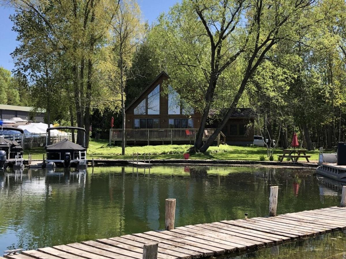 Beautiful log sided, Chalet style home on the Crooked River, with over 672+/- feet of Crooked River frontage on 3.68+/- acres for sale! This is an amazing location! Walk into town for lunch or dinner or stay home and sit on the large deck overlooking the water watching the boat traffic go by. The spacious main level is perfect to entertain. The wall of windows gives you a great view of the water from indoors. This home has 2 large bedrooms and a loft that can be used as a third nonconforming bedroom. The spacious ''hot tub'' or 4 season room is a great additional space to gather. Enjoy the outdoors in the large yard with a point that goes out to the river. Along with the space is there is plenty of dockage to fit multiple boats!Home is sold furnished less a few excluded items.