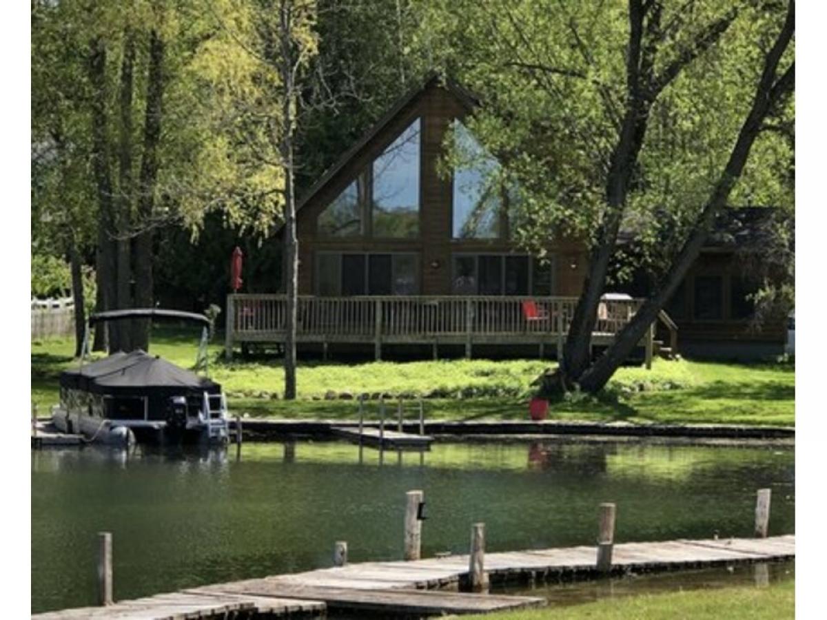 Beautiful log sided, Chalet style home on the Crooked River, with over 672+/- feet of Crooked River frontage on 3.68+/- acres for sale! This is an amazing location! Walk into town for lunch or dinner or stay home and sit on the large deck overlooking the water watching the boat traffic go by. The spacious main level is perfect to entertain. The wall of windows gives you a great view of the water from indoors. This home has 2 large bedrooms and a loft that can be used as a third nonconforming bedroom. The spacious ''hot tub'' or 4 season room is a great additional space to gather. Enjoy the outdoors in the large yard with a point that goes out to the river. Along with the space is there is plenty of dockage to fit multiple boats!Home is sold furnished less a few excluded items.