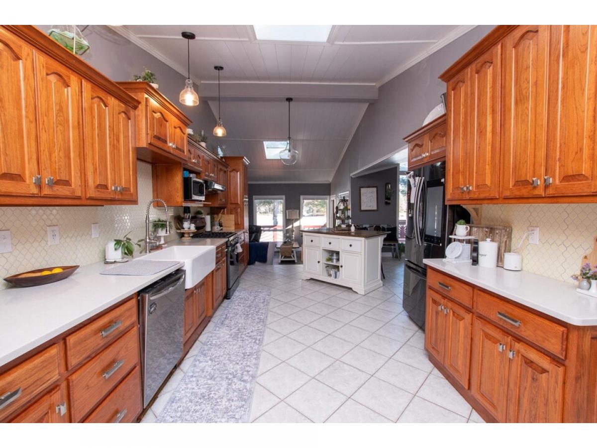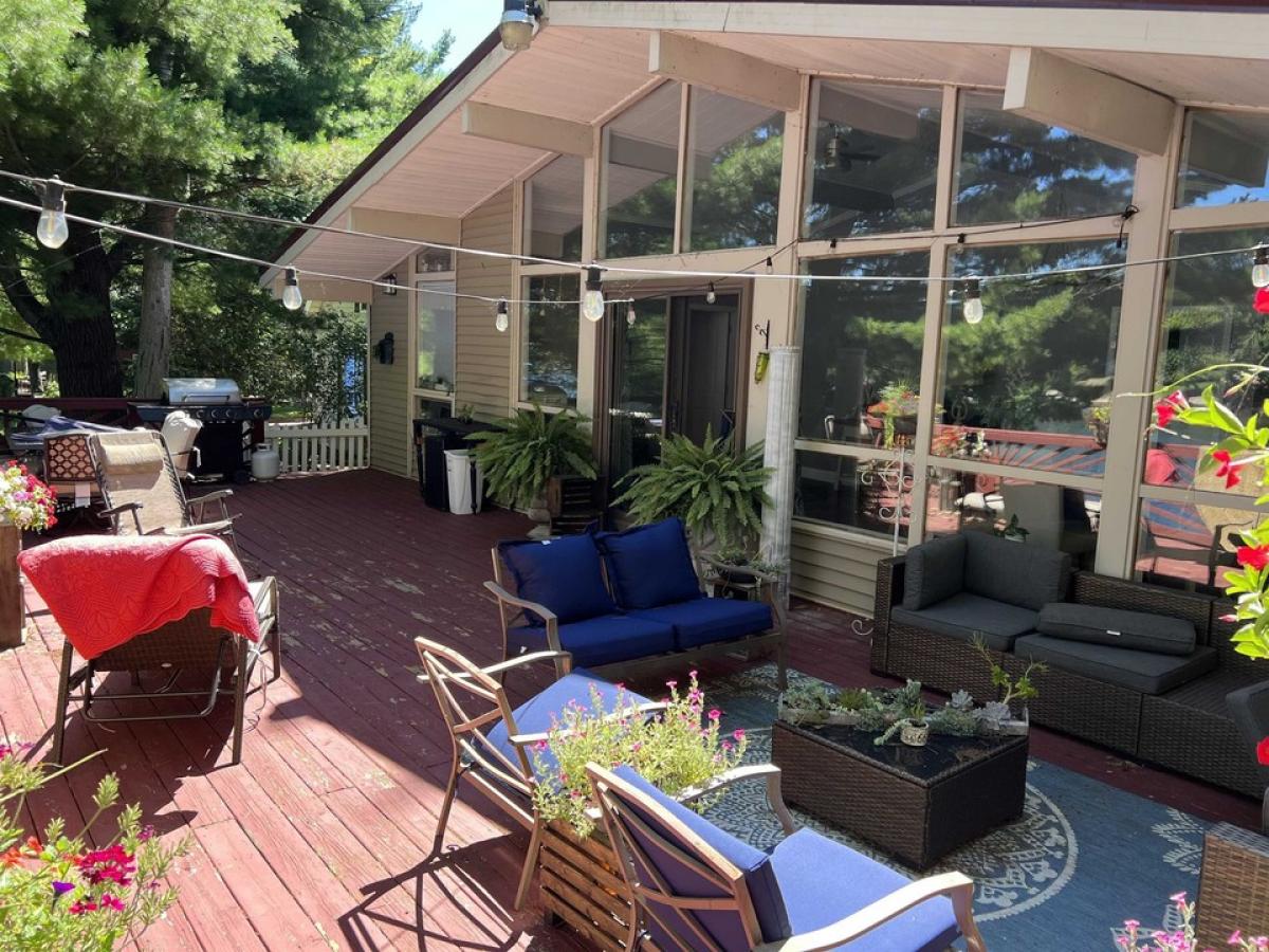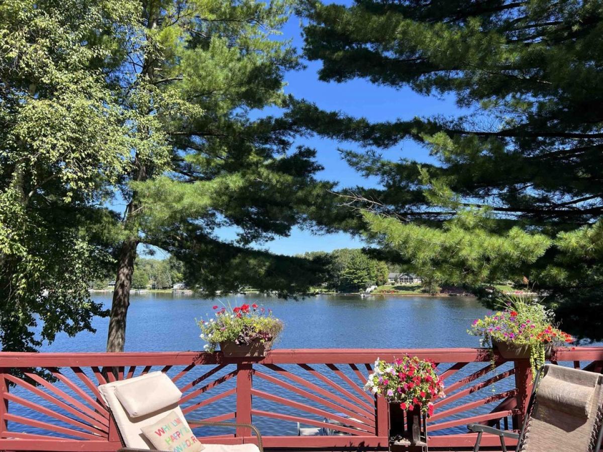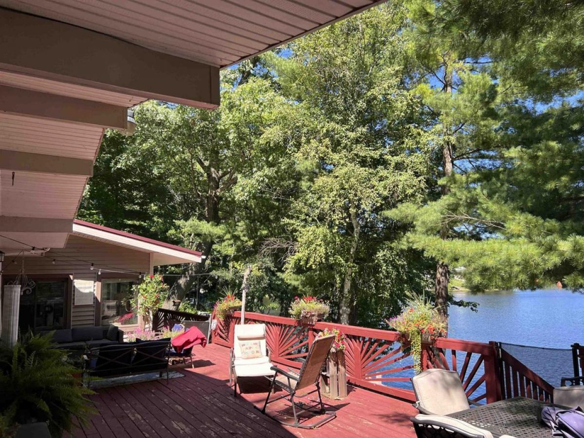 Stunning spacious remodeled ranch home with 3300 sq. feet of living space with a full walkout basement on all sports Five Lakes with 2 lots.4 bedrooms and 2 bath. Paved driveway and new stamped concrete to enter the front of the home, with attached garage and metal roof. Beautiful windows all along the water side with custom shades gives full views of the lake, walk out onto the deck of 1200 sq. feet to set up your seating area for entertaining, and a patio on the lower level. This home has been thoroughly remodeled with quality industrial flooring, the master bedroom is large and has a beautiful walk in closet with built in organizing system, the bathroom has a tiled walk in shower and very roomy. The kitchen is granite counters and tile flooring, all appliances are included, WIFI fridge and stove. Sunken living room with wood stove and brick going up to ceiling. Full walkout basement with open family room, wood stove and a bedroom, with a large storage area. Meticulous kept and cared for and landscaped! Come make Lake memories on beautiful Five Lakes!