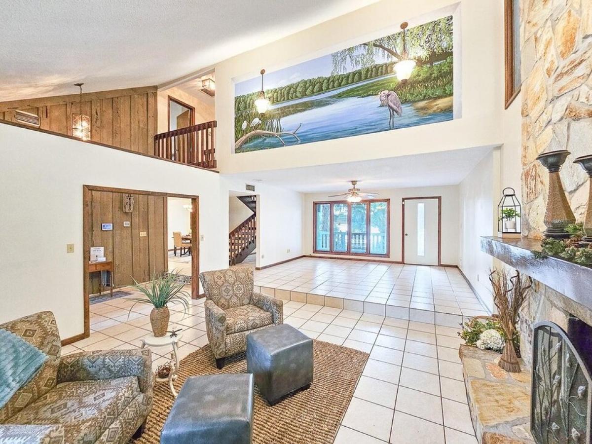 Experience the serene setting of lakeside living on Little Lake Geneva and enjoy undisturbed lakeside mornings in this beautiful, move in ready home. Spacious rooms, soaring ceilings, and walls of windows overlooking the lake offer warmth and elegance throughout. The timeless cedar siding, stone fireplace, and an original Harimander Khalsa mural harkens back to an old Florida charm and provides a natural backdrop for a comfortable, relaxed lifestyle. The expansive outdoor deck is perfect for cooking amp; entertaining with panoramic views of the lake. The inside laundry/pantry room comes with a washer, dryer, laundry tub, oodles of storage, and an additional refrigerator/freezer. This well-maintained home offers an inviting layout, perfect for both relaxation and entertaining. The oversized detached workshop/storage building is complete with air conditioning and two additional closets/storage rooms, just waiting to be outfitted for a man-cave or a she-shed. Don#039;t miss this opportunity to own a piece of paradise while the prices are still affordable. This property would also make a great investment as a VRBO property.