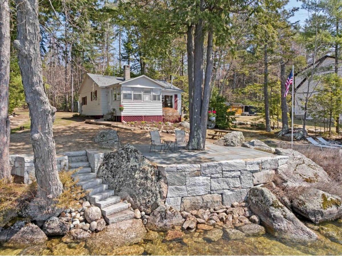 125#039; of pristine sandy shorefront with prime westerly exposure on Lake Winnisquam, New Hampshire#039;s fourth largest lake! This remarkable level 0.59 acres private lot is located at the end of a quiet dead-end road. Watch blazing sunsets from the scenic bluestone lakeside patio and perched sandy beach. The lakeside has been professionally enhanced with two separate granite step entrances to the shorefront. The crystal clear sandy bottom shorefront encourages swimming. A 32#039; dock, granite stone shoreline wall, and hammock provide the ultimate lakeside setting. The charming 2-bedroom cottage with a detached garage and vinyl carport sits way back from the quiet road. The open floor plan includes warm pine walls and ceilings, hardwood and softwood floors, and a cozy living area with a gas stove and wood-burning fireplace. The eat-in kitchen opens to an oversized screened-in porch with lake and mountain views. Furniture is included, allowing you to move right in and enjoy! The local area is perfect for walking, running, biking, and exploring.nbsp; This property embodies the true essence of lakeside living and is ready to be cherished as-is or while planning your dream waterfront escape. This is not your average lakefront lot; it#039;s a gem and a very special property.