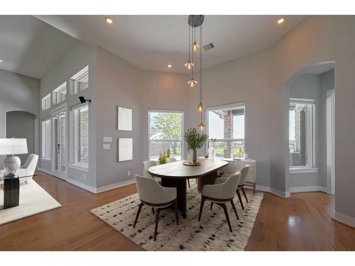 Fabulous 1 story, 1.28 acre WATERFRONT lot, offering an Open Floorplan,abundance of windows for natural lighting and views from every angle of your fabulous Lot! Living Area features High Ceilings,fireplace, opens to kitchen and Dining Area. Kitchen offers BOSCH appliances, Large island w/add#039;l seating, plenty of cabinet/counter space, undermount lighting, soft close cabinets/drawers. Primary Bedroom overlooks peaceful back yard space w/spa like bath w/soaking tub, separate shower, 2 vanity areas and large walk in closet, all add#039;l bedrooms offer ensuite bathrooms, 4 th bedroom is perfect for guest or mother in law suite, offering a full kitchette. Next to the guest suite is an add#039;l room w/many options, 2nd office, gameroom, living area for mother in law suite. Private Office is located at the front of the home. Your backyard OASIS offers Pool/Hot tub over looking the Lake! Garage offers built in shelving/storage and 2 250 Volt 30 amp outlets for EV Charging. Check out our video