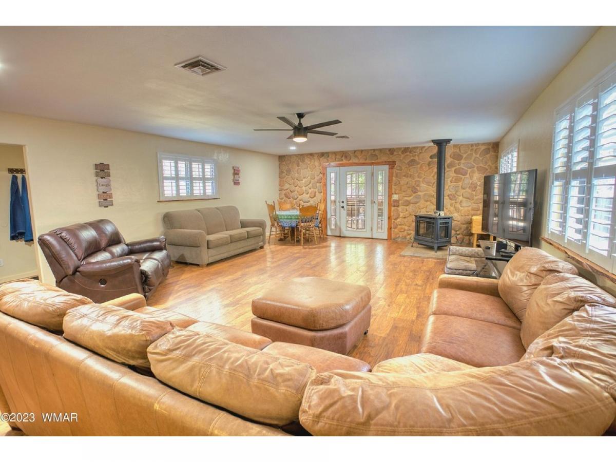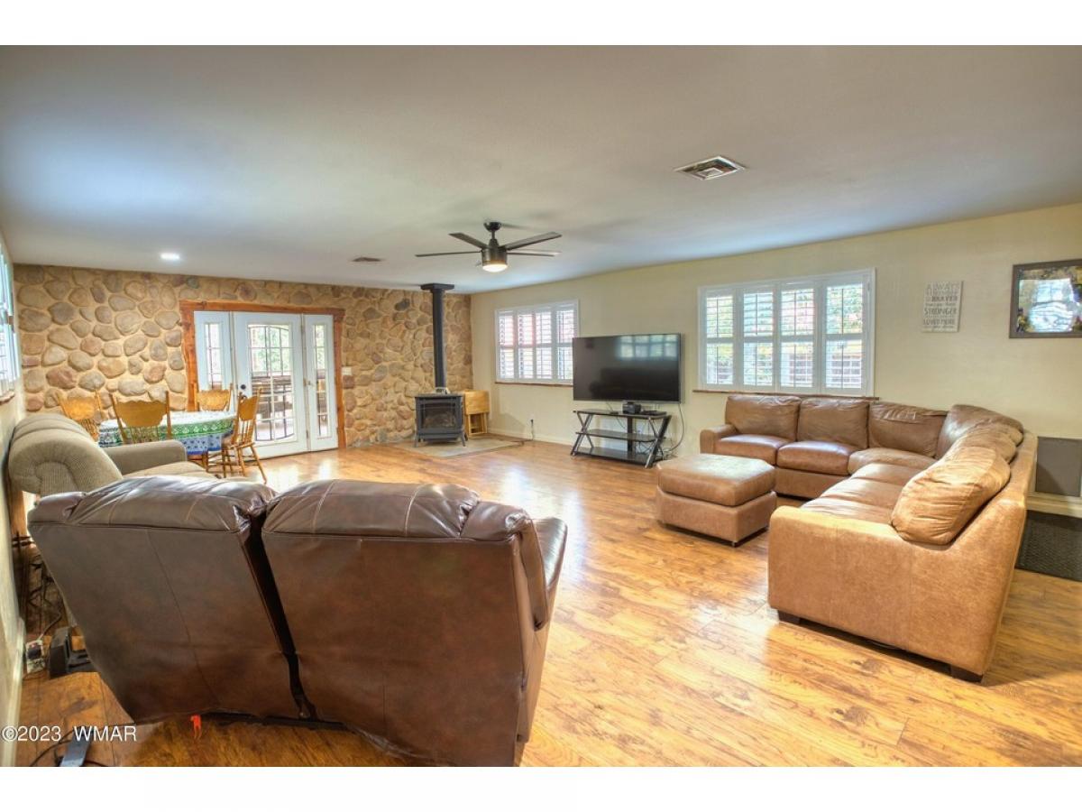 Family need more room? Well, here it is. This well situated, deep in the tall pines, 4 bed, 3 bath, split floor plan, & single level home with NO HOA & walking distance to Blue Ridge schools is now available. So many upgrades in the last 4 years...New metal roof, Dekton Kitchen Countertops, new water heater & bathroom heaters, an Air Conditioner was added, plantation shutters, a wooden shed/utility building, Doggie Door, & so much more. A HUGE 27x20 Great Room with a new gas fireplace, opens up to a large COVERED deck overlooking a fully privately fenced, spacious backyard. There is also a separate fenced area for your animals. Two car garage off a tree lined circular driveway, extra parking spaces, & more. There is even an RV clean out... This is all situated in a centrally located & VERY quiet neighborhood of Lakeside, AZ on almost a half an acre, near Billy Creek. Close to the movie theater, Rainbow Lake, Restaurants, & Safeway. Be ready to listen to the elk & deer sounds as they meander through your beautiful yard, whilst the squirrels playfully hop from tall pine to tall pine. Add a hummingbird feeder & a birdhouse or 2, and they are sure to visit you as well. Additionally, Pinetop-Lakeside has been a very successful area for Vacation Rentals & Long Term Rentals should you be looking for an investment property. The possibilities are ENDLESS in the White Mountains, with indoor comfort & outdoor enjoyment for a relaxing weekend visit to your 2nd Home, or a full-time stay in your NEW Home. Be prepared to be charmed! The White Mountains offers so many wonderful things... fishing, hunting, golfing, boating, canoeing, kayaking, go-carts, mini-golf, disc golf, arcades, horseback riding, Rodeo Grounds/Roping Arenas, a Casino, a Regional Airport, Skiing, snowman building, mountain biking, hiking, shooting ranges, indoor Aquatics, Parks, Ziplines, Dog Parks, Fitness Centers, Aerobic Classes, Photography, Painting Classes, Dancing, Pickleball, Northland Pioneer College, & so much more... All nestled in the tall variety of trees in the White Mountains. Close to restaurants, shopping, the Hospital, and more. You can happily experience all 4 Seasons in our White Mountains year-round as well. Come by and take a look for yourself. Make these White Mountains YOUR White Mountains too... You won't be disappointed. :)