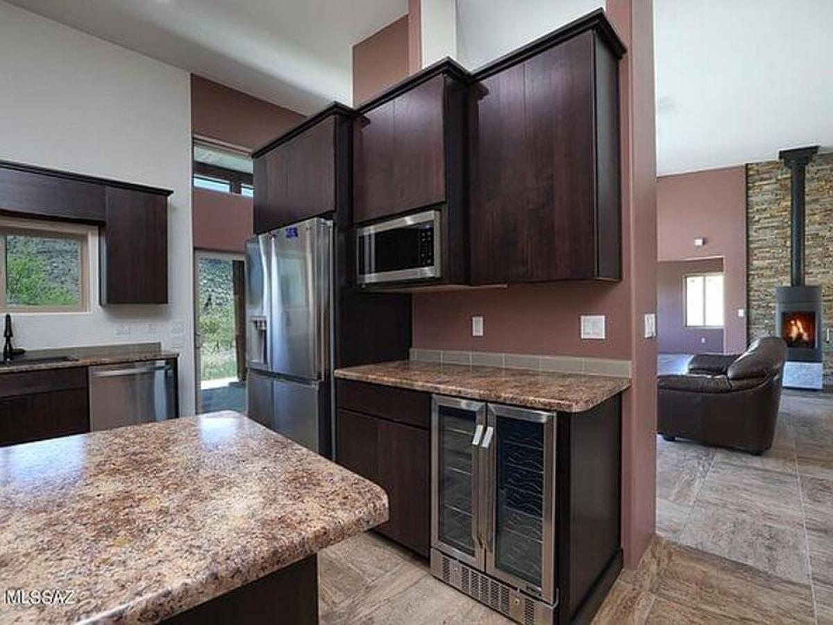 MODERN CONTEMPORARY RANCH HOME at the dramatic Salero Ranch between Tubac Patagonia at a cooler 4,400' elevation. Essentially a brand new home very lightly lived in. Add your finishing touches to this custom 3 BR, 2 BA, environmentally conscious, Insulated Concrete Form home with excellent R values. Amazing wood burning stove in the living room provides excellent heat. In addition, there are 7 efficient mini-splits to heat cool the home. Smart Home LG ThinQ appliances rolling shutters throughout. Beautiful metal roof collects rainwater for harvesting. Property includes a separate 988 sq ft water storage house with 15,000 gallons of storage also built with ICF, metal roof water filter system. Seller has more than $200,000 into the property over the listed price.