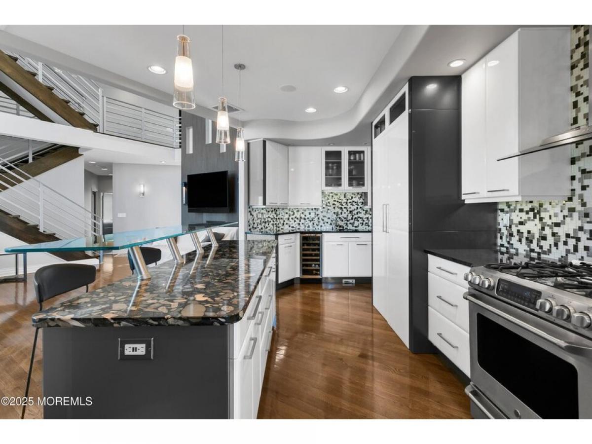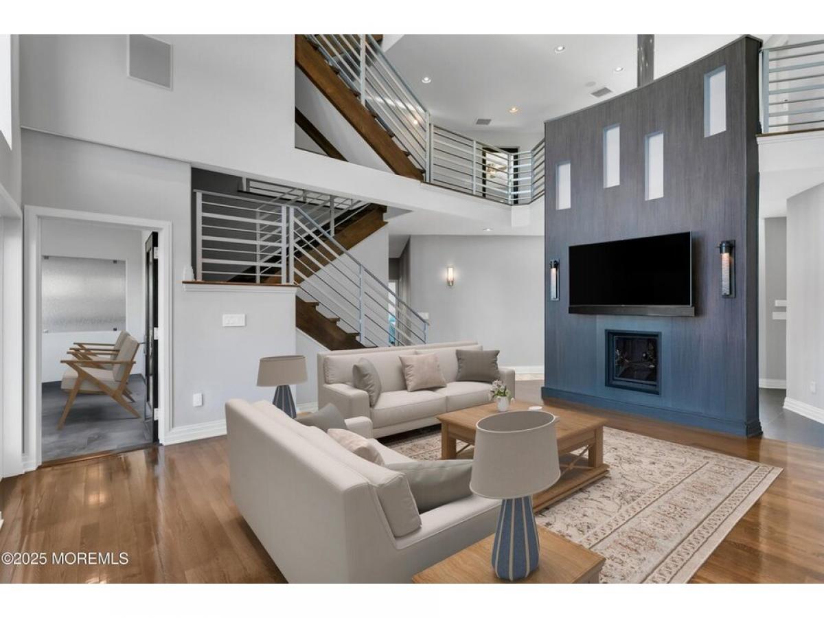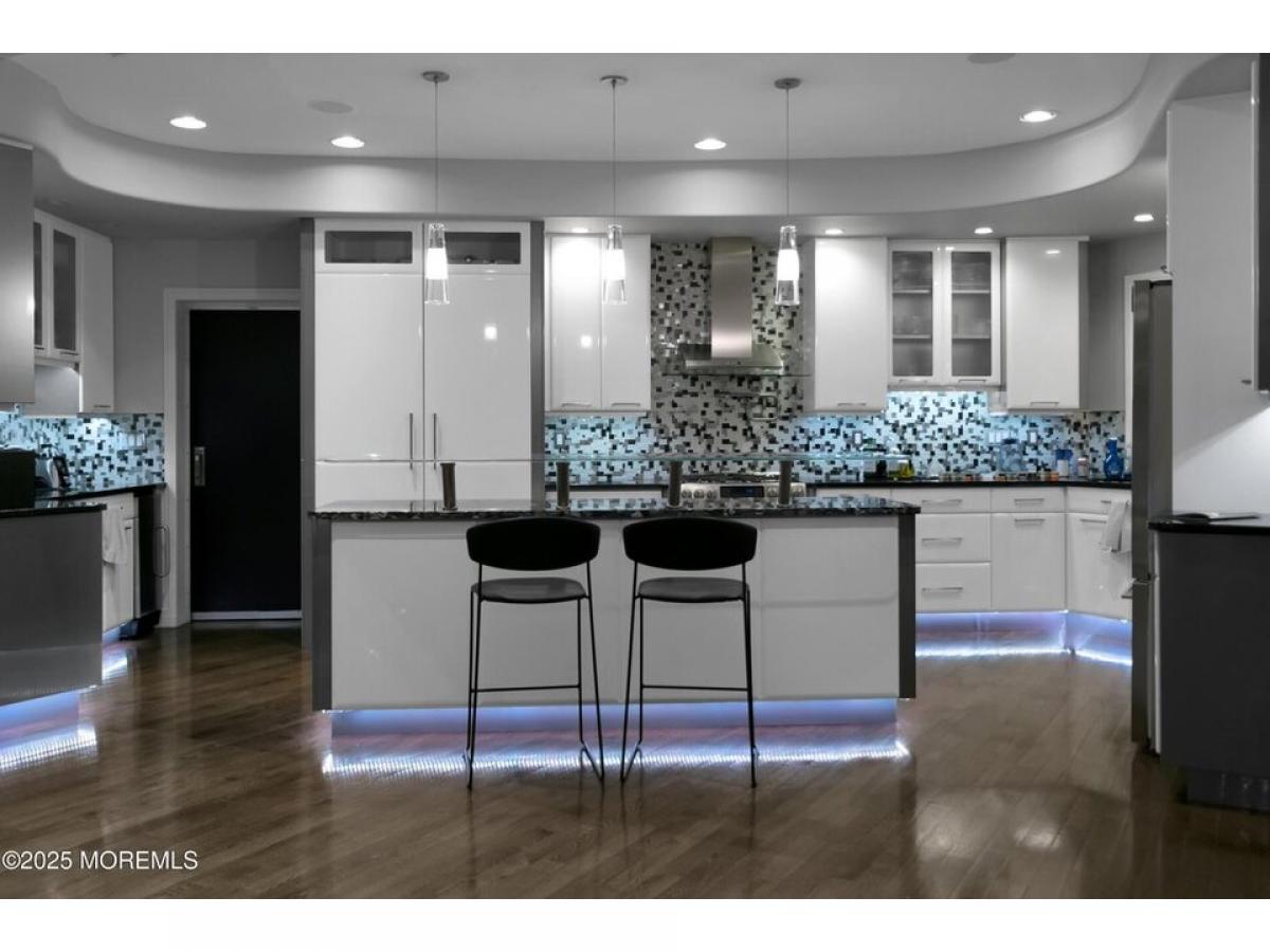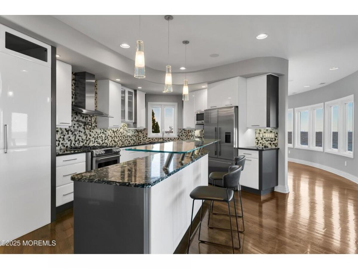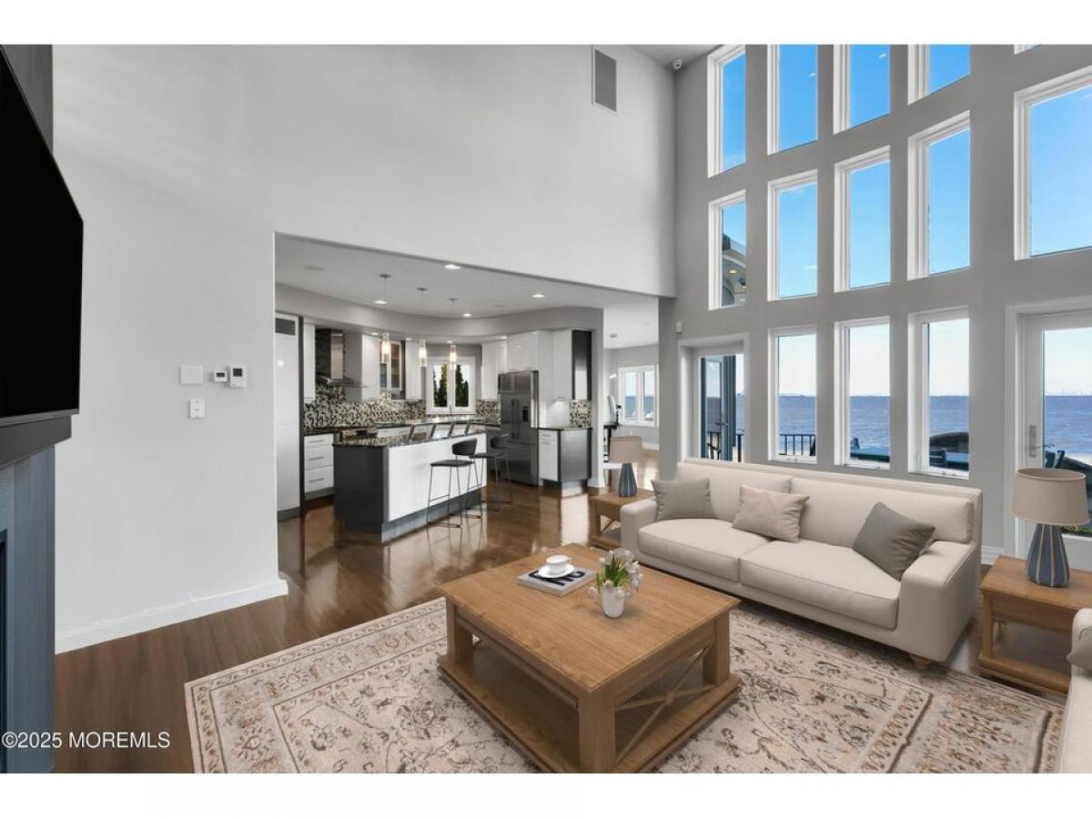 Waterfront oasis w/ sea wall amp; beach access. Views of NYC skyline amp; seasonal sunrises/sunsets over water. Less than frac12; mile walk to shops, restaurants amp; 40 minute SeaStreak ferry to NYC. Stay fit amp; unwind in the spa room w/ current pool, hot tub, sauna amp; steam shower. Relax or create in the theater/multi-room recording studio. Entertain in the chef#039;s kitchen, dining room amp; on the patio w/ grill station amp; gas firepit. XL garage w/ elevator access amp; potential for mother-in-law suite w/ private entrance. XL basement, 2 laundry rooms, hurricane windows/straps. Wired smart home w/ Elan/Nice app, 53 built-in speakers (indoor/patio), cameras, security, generator amp; deeded solar. Possible riparian grant amp; possible ability to build a dock. 7227 sqft, 4 bed 5 bath, opt 5th bed.