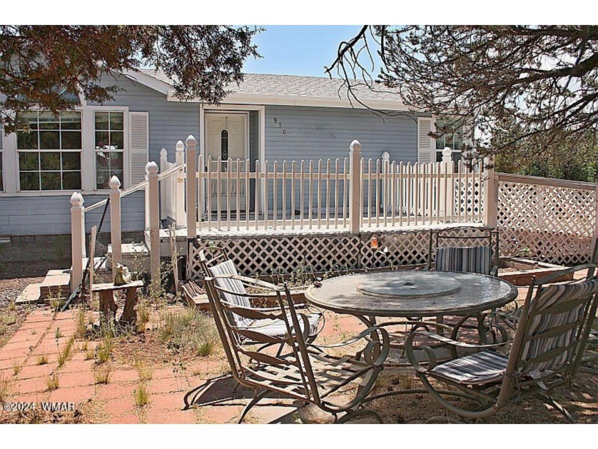 This 3 bedroom, 2 bath 1,680 sq. ft. 2006 Cavco home sits on 1.26 level acres just East of town in the quaint community of Vernon, AZ. The light and bright kitchen is a welcome place to enjoy a meal with family and friends. The split floor plan features spacious bedrooms plus there is a gas fireplace in the great room for those chilly evenings. The large 2 car attached garage also has an attached workroom on the back of it for even more value. Fully fenced for the furry friends and there is an RV pad with hook ups too.