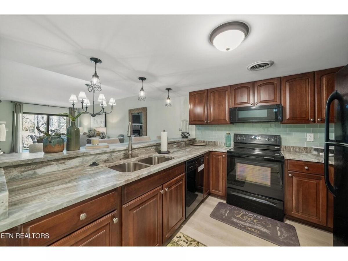 This totally remodeled and redecorated condo sits right on the river in Townsend in walking distance to The Social, the post office, Pizza Hut, the grocery store and more. The furnishings were chosen by the owner and provided by Bradens Lifestyles Furniture in Turkey Creek. There is no carpet in the unit and the electric fireplace is new and does heat the main living area just fine. Each bedroom has its own bathroom and the tiled shower is new. All appliances and furnishings will remain with the sale of the condo except for some small personal items. Some units in the building are used as an AirBnB and do quite well. Enjoy waking up every morning to the sound and sight of the river or sit on your back covered patio in the Adirondack chairs and see the beauty of the wooded lot. This energy efficient condo offers a new water heater, new HVAC, new washer and dryer and many new finishes. Each closet has custom designed new storage systems. This could be the peaceful side get-away that you#039;re seeking! Owner/Agent
