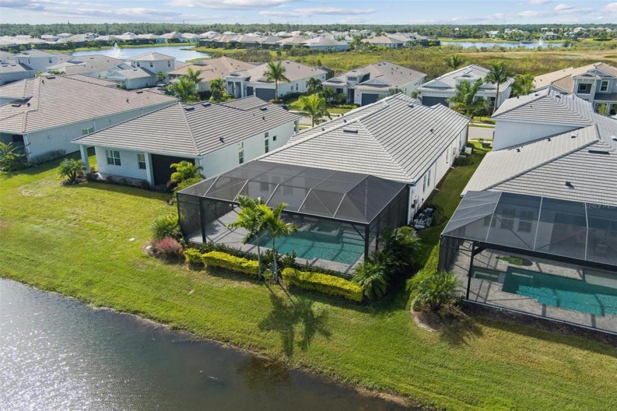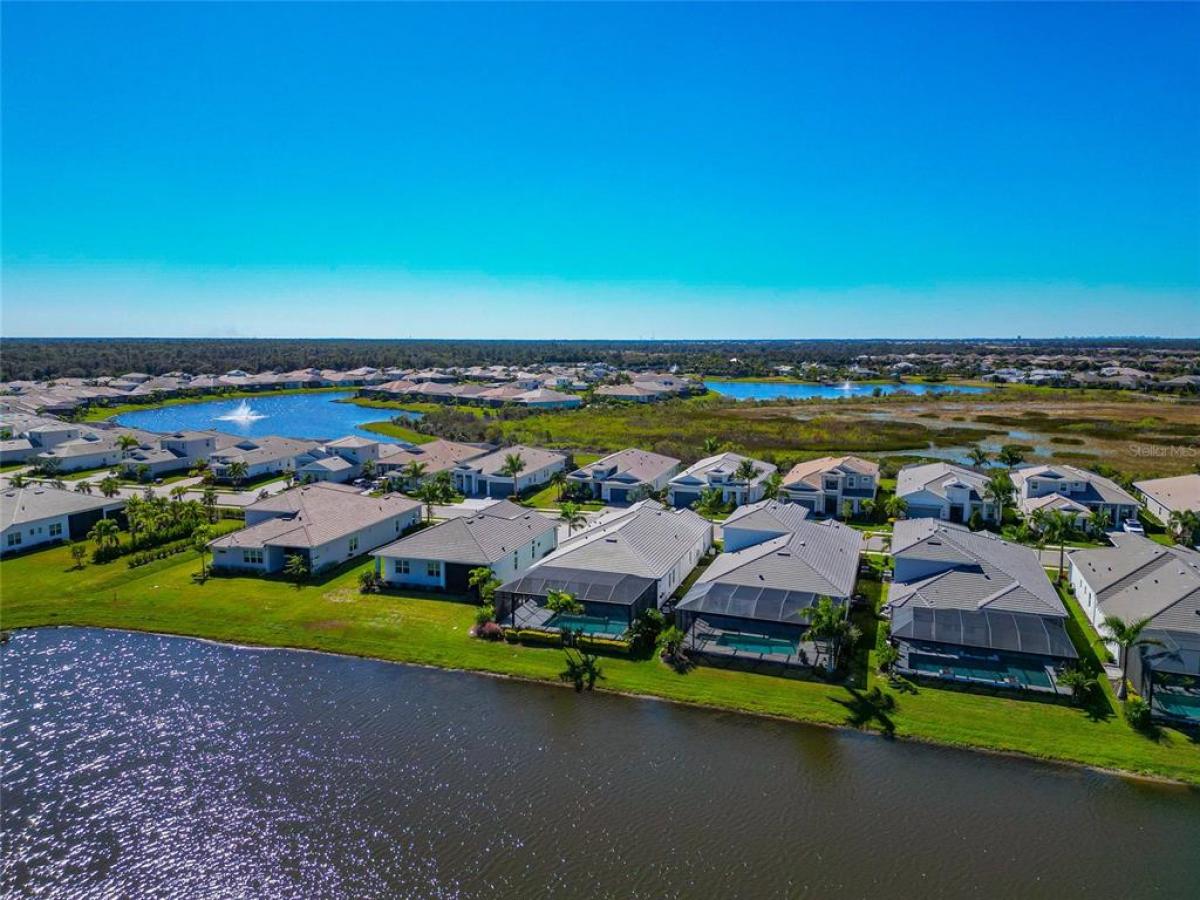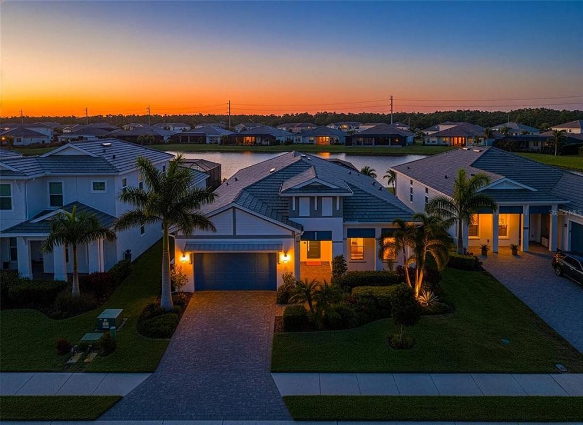 Under contract-accepting backup offers. One or more photo(s) has been virtually staged. Discover this better-than-new luxury residence perfectly positioned on a premium waterfront lot within the highly sought-after community of "The Isles at Lakewood Ranch." Every detail reflects exceptional craftsmanship, timeless design, and the effortless elegance of coastal-inspired living. Step through the elegant glass front door and be immediately drawn to the expansive great room—a true centerpiece featuring custom wood trim tray ceilings, warm coastal flooring, and a large wall of sliding glass doors that seamlessly connect the indoors to your outdoor sanctuary. Prewired speakers throughout the great room and lanai create the perfect ambiance for entertaining or relaxing in style. At the heart of the home, the chef’s kitchen commands attention, with its massive quartz waterfall island and breakfast seating, custom soft-close cabinetry, upgraded Wolf dual gas range, and Sub-Zero stainless-steel refrigerator—combining superior performance with striking design.Open the doors to your private outdoor oasis, complete with a stunning saltwater heated pool and spa with marble lanai decking framed by a panoramic enclosed screen offering breathtaking lake views and a tranquil water-front featured fountain. Entertain under the covered loggia featuring a fully equipped outdoor summer kitchen, dining area, and lounge space—all surrounded by lush tropical landscaping for privacy. The owner’s suite offers a serene retreat, custom built-in closets, and a spa-inspired bath showcasing an oversized tiled walk-in shower with dual shower jets, a glass-enclosed soaking tub, and double vanities. Guests will enjoy the comfort of their private en-suite bedrooms, while a spacious study/den with French doors provides the ideal space for work or quiet reflection. This exceptional home features over $400,000 in premium upgrades, including hurricane-impact windows and doors, a full home generator, automatic hurricane-rated lanai screens, custom built-in California closets throughout, a water purification system, a 3-car garage with epoxy flooring, insulated attic space, and full outdoor kitchen. Residents enjoy resort-style amenities including a coastal themed clubhouse, fitness center, yoga room, resort pool with spa, tennis and pickleball courts, dog park and numerous scenic walking trails. Ideally located just minutes from major highways, championship golf courses, downtown Waterside Place, and the desirable University Town Center Mall offering premier shopping and dining—this home embodies the perfect blend of luxury, privacy, and convenience. Experience the pinnacle of refined coastal living in one of the most desirable communities in Lakewood Ranch.