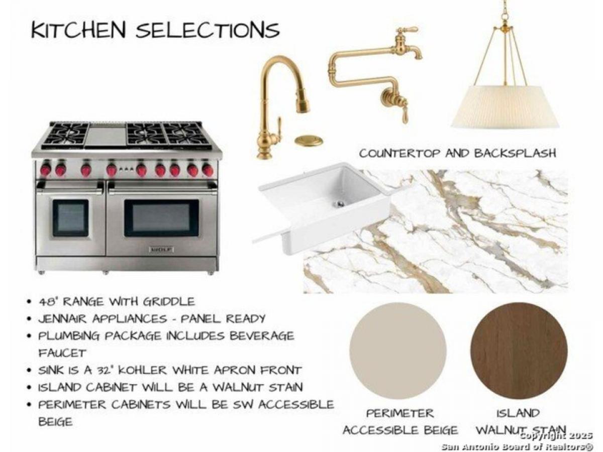 NEW CONSTRUCTION IN TERRELL HILLS! COMPLETION SCHEDULED FOR JUNE! This stunning new home, crafted by Dabney Homes in collaboration with Joyeux Home Decor, exudes sophistication inside and out. Its traditional stone and stucco exterior welcomes you into an enchanting interior designed with impeccable taste. This 4-bedroom, 4.5-bath residence has been thoughtfully designed for both elegance and function. The main level features a luxurious primary suite complete with a marble bath, dual vanities, a walk-in shower, a soaking tub, and a generous walk-in closet. Also found on the first floor is a secondary bedroom with a private bath, a dedicated office, and an open-concept living area making this floorplan ideal for both relaxation and productivity. The chef#039;s kitchen is a showstopper, offering a large gathering island, magnificent marble countertops, and a commercial grade Wolf gas range. The kitchen flows seamlessly into the spacious family room, featuring a fireplace and ample space for entertaining. Step outside to the expansive covered porch-perfect for entertaining and outdoor dining. Plus, there is room to add a pool for even more outdoor enjoyment. Upstairs, you will find two additional bedrooms, each with its own ensuite bath, along with a versatile game/media room. Every detail has been considered to ensure this home meets the highest standards of style, comfort and appeal. Anticipated delivery is June 2025. Don#039;t miss this opportunity to own a spectacular new designer property in Terrell Hills! Sample pool design and proposal available from Gary Pools. Pool not included in purchase price.