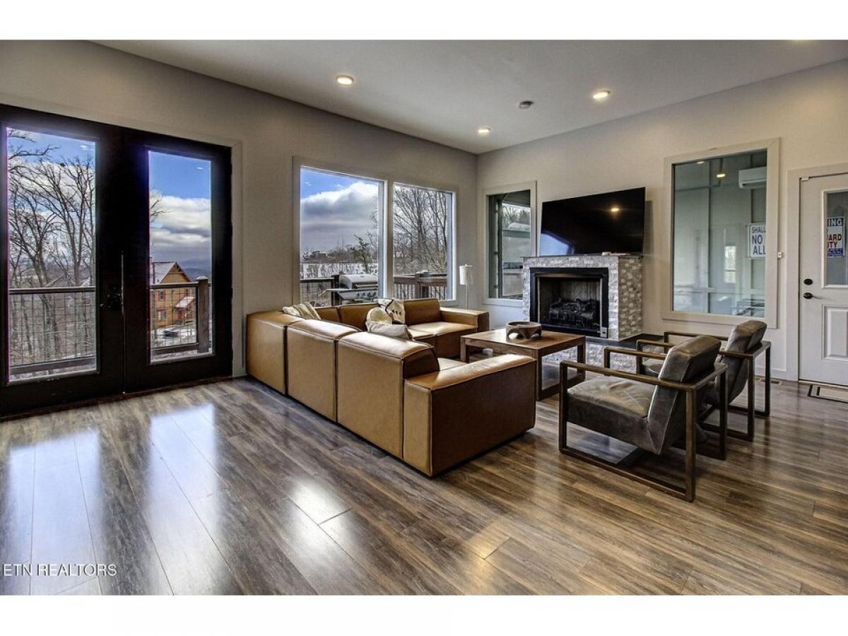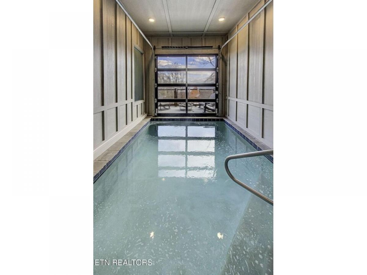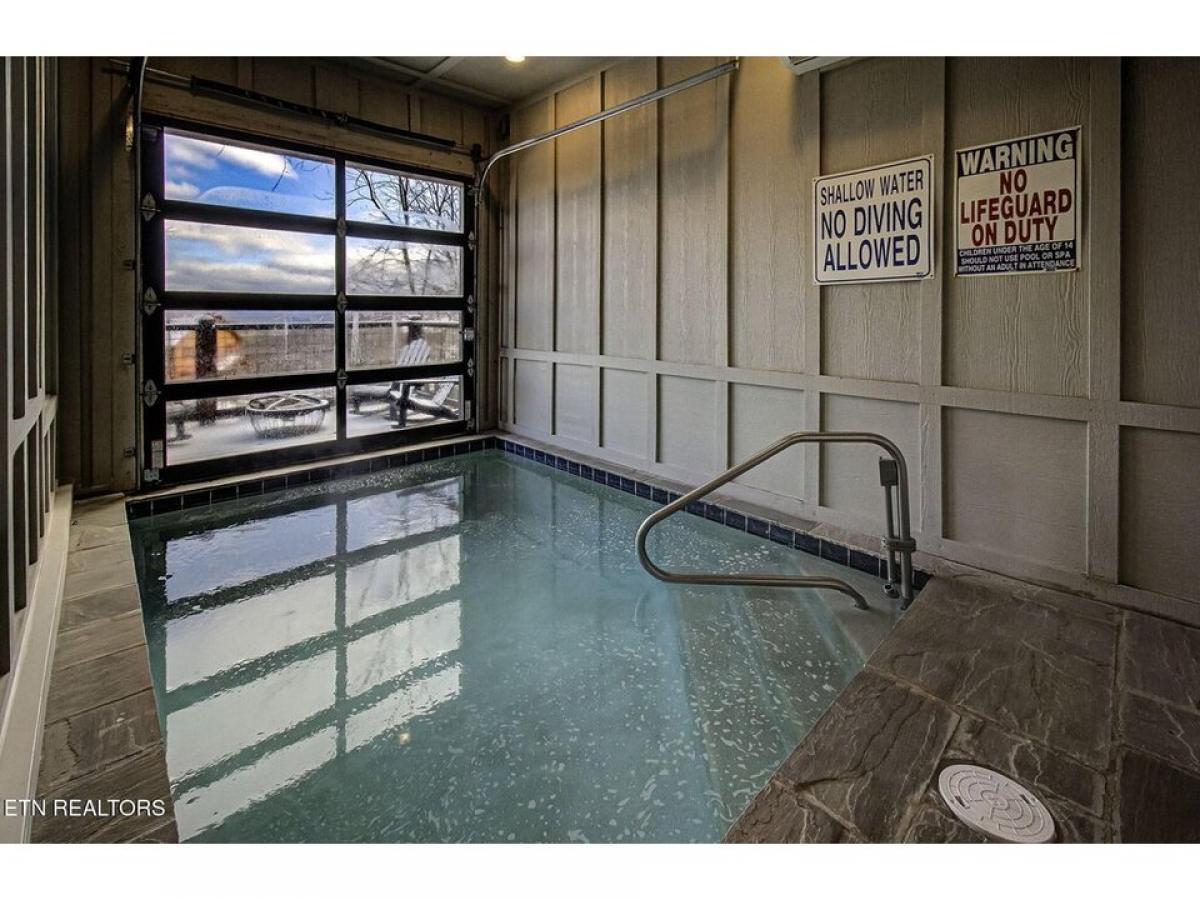 Experience luxury mountain living in this stunning modern cabin featuring breathtaking 180-degree views of the Smoky Mountains. Conveniently located just 10 minutes from downtown Gatlinburg and the Great Smoky Mountains National Park, this cabin offers the perfect blend of luxury, entertainment, and accessibility. The centerpiece is an indoor pool with a unique retractable window door that seamlessly connects indoor comfort with the majestic mountain landscape. Unwind in the elegant living space, complete with a plush leather sectional positioned perfectly to enjoy both the large screen TV and cozy gas fireplace. The fully equipped kitchen boasts new stainless steel appliances, a spacious island with barstools, and striking leather granite countertops, alongside a generous dining room table for memorable family meals. Entertainment continues upstairs in the game room, featuring air hockey, foosball, and arcade games for hours of family fun. After a day of adventure, relax in the 4-person hot tub while taking in the mountain air.