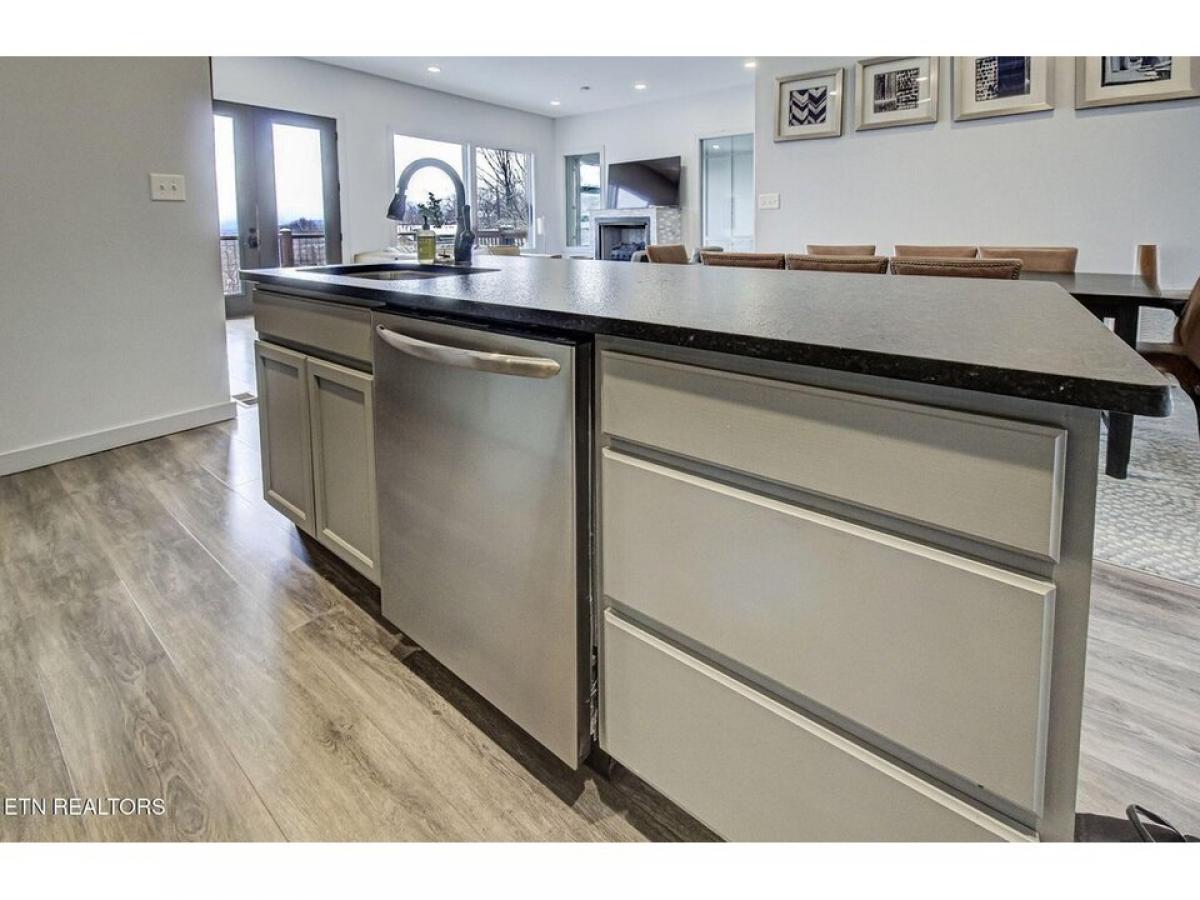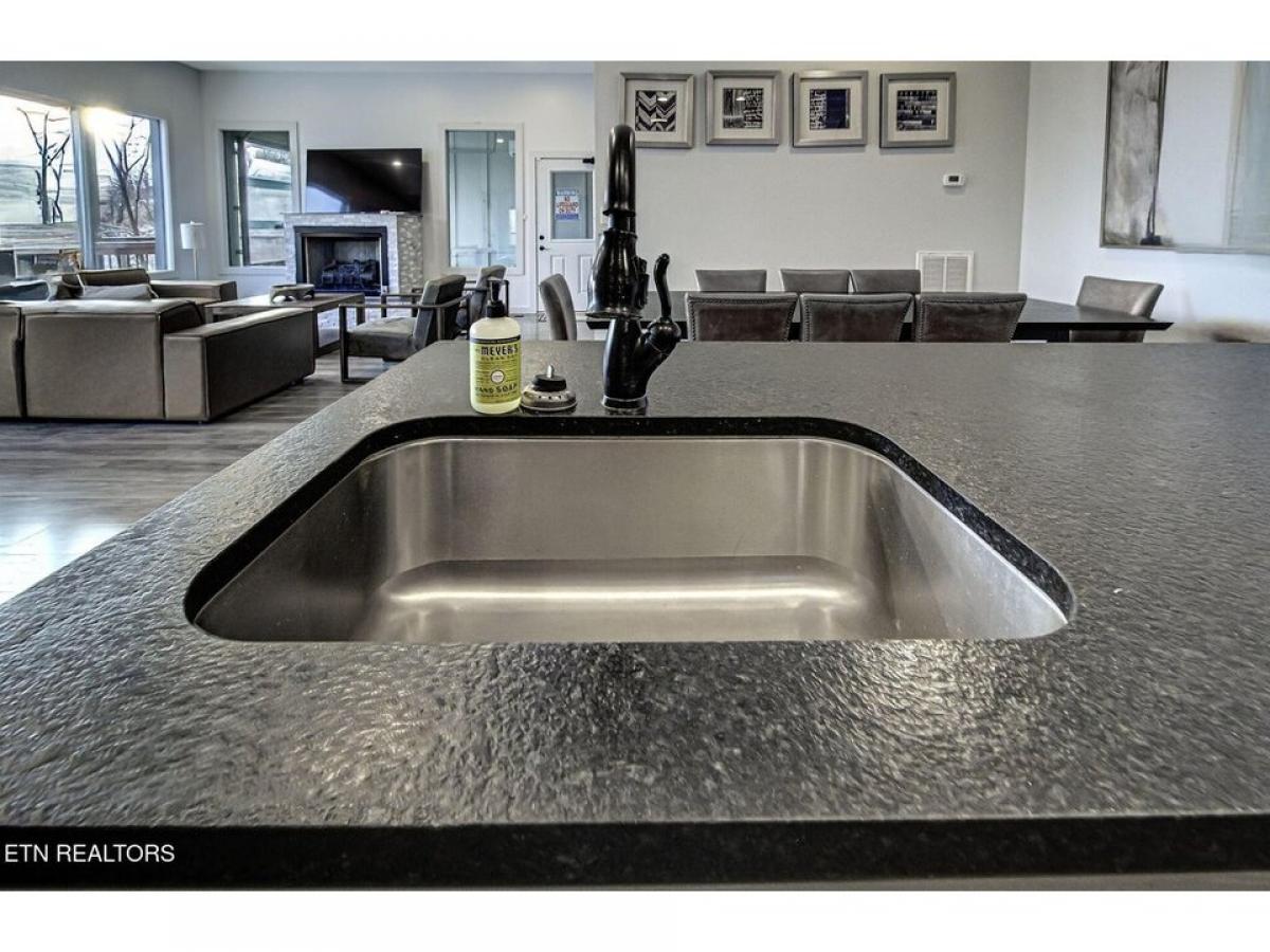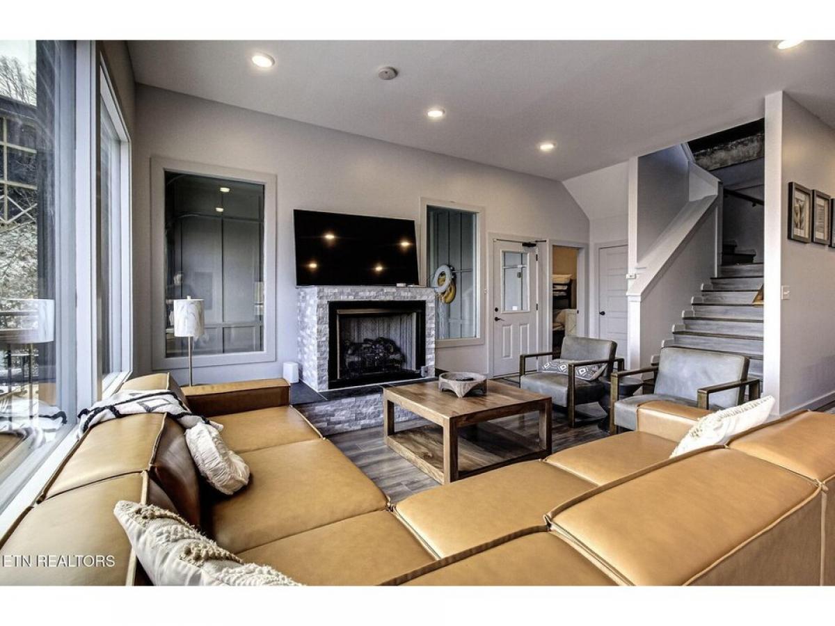 Experience luxury mountain living in this stunning modern cabin featuring breathtaking 180-degree views of the Smoky Mountains. Conveniently located just 10 minutes from downtown Gatlinburg and the Great Smoky Mountains National Park, this cabin offers the perfect blend of luxury, entertainment, and accessibility. The centerpiece is an indoor pool with a unique retractable window door that seamlessly connects indoor comfort with the majestic mountain landscape. Unwind in the elegant living space, complete with a plush leather sectional positioned perfectly to enjoy both the large screen TV and cozy gas fireplace. The fully equipped kitchen boasts new stainless steel appliances, a spacious island with barstools, and striking leather granite countertops, alongside a generous dining room table for memorable family meals. Entertainment continues upstairs in the game room, featuring air hockey, foosball, and arcade games for hours of family fun. After a day of adventure, relax in the 4-person hot tub while taking in the mountain air.