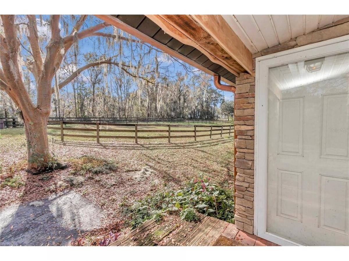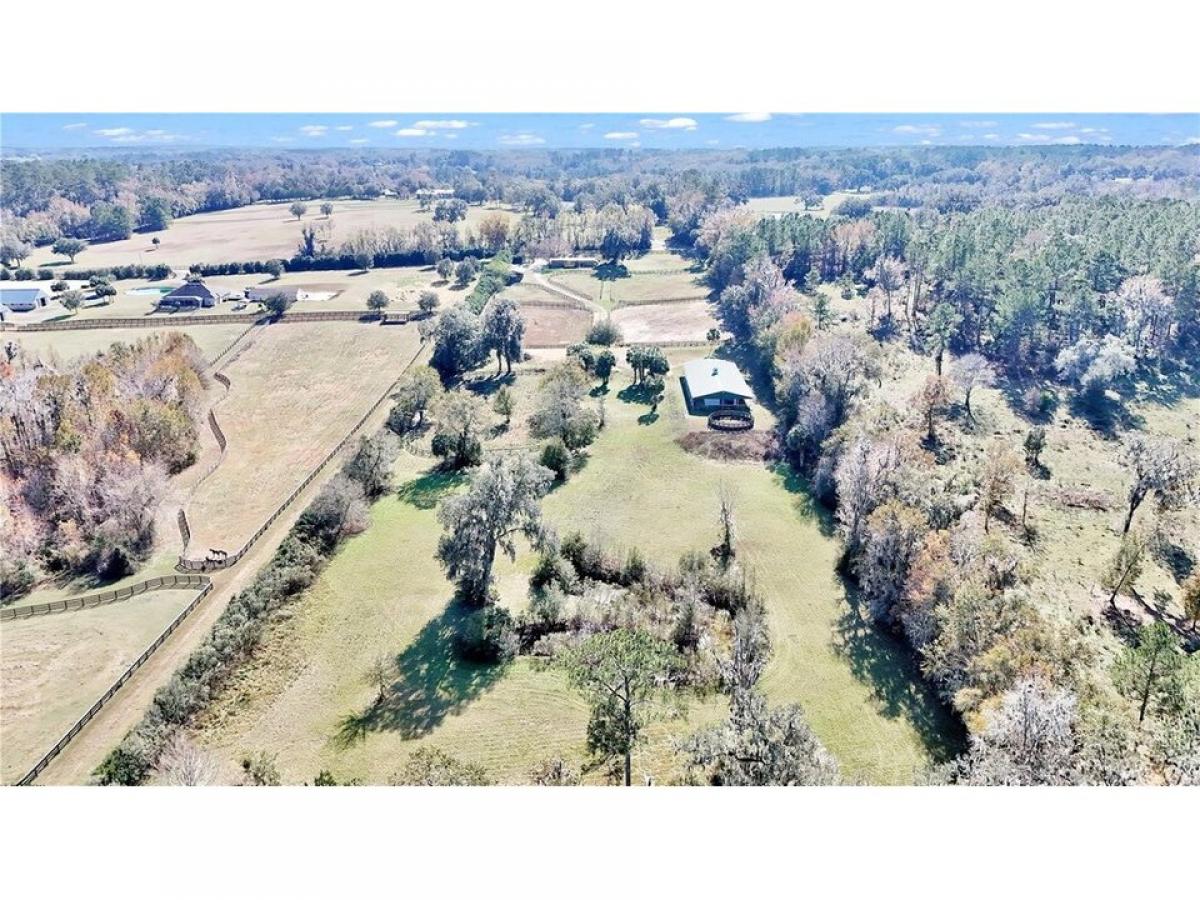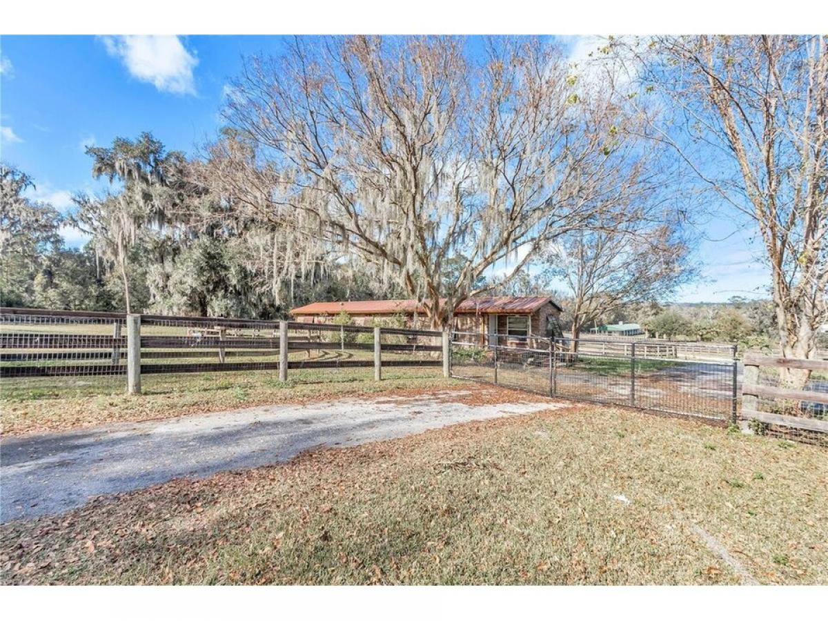 This 10 acre horse farm features 12 stall concrete block barn with spacious stalls, large hay storage with full bath plumbed for potential apartment and oversized tack room. There are seven large paddocks forturn out and a round pin. The perfect area for your arena and additional space behind the barn for hacking! Double gated entrance for easy in and out with your horse trailers . The home is a single wide with custom full four sided stacked stone, lifetime metal roof, and shutters decorating the windows for privacy and lower energy costs. This 2 bedroom 1 bathroom home has just been freshly painted on the interior. There is lvp, tile and carpet in 1 of the bedrooms and features spacious living room and large deck overlooking all of the picturesque 10 acres. An additional barn matching the home with stack stone features 3 additional stalls with tack room/storage area. This perfectly sized property is all about location as well being a short drive to the World equestrian center, hits and all 3 day eventing venues! Owner Financing Available!