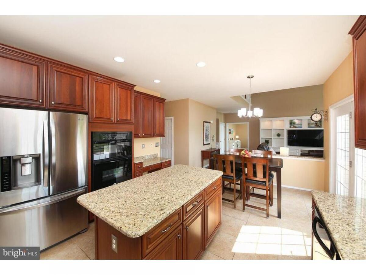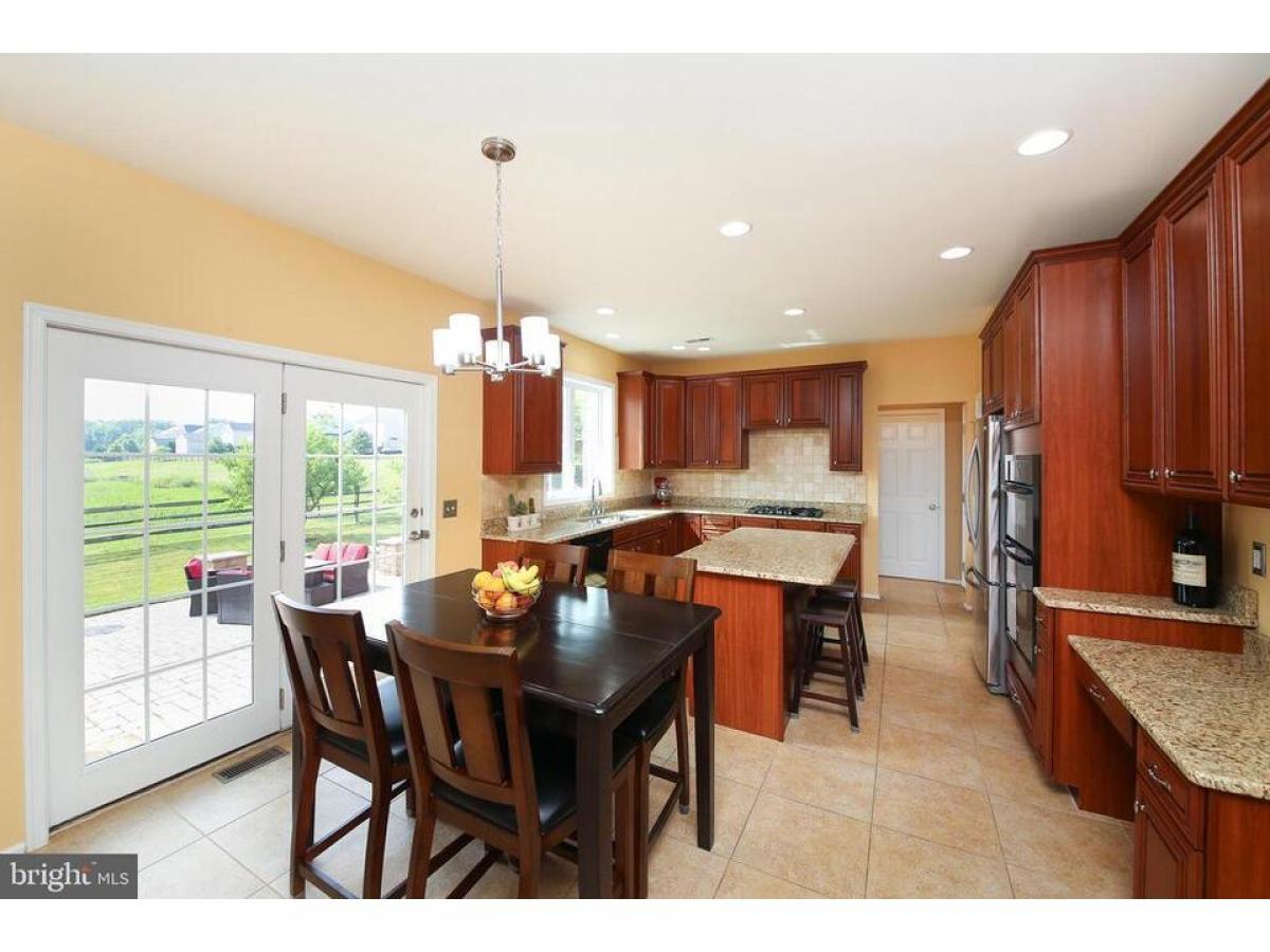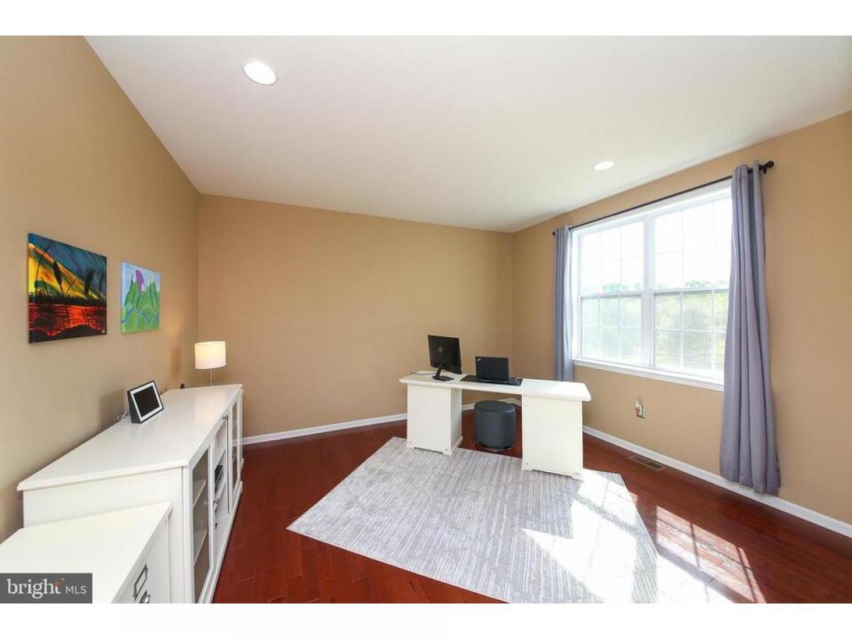 Welcome to 815 Myrtles Way, a stunning 5-bedroom home nestled on a serene cul-de-sac, surrounded by open space, in the desirable Pennland Farm community. This meticulously maintained home presents a rare opportunity to own one of the largest models in the development. Upon entering, the home exudes sophistication with its hardwood floors, wainscoting, 4-piece crown moldings, and recessed lighting throughout. The family room boasts custom built-ins and a beautiful full stone wall gas fireplace creating a warm and inviting atmosphere for relaxation and entertainment. The kitchen is a chef's dream, featuring granite countertops, a stone backsplash and an extended center island providing space for both cooking prep and casual dining. The breakfast area provides lots of natural light and access to the rear paver patio. The dining room offers an elegant space for formal gatherings and special occasions, complete with exquisite detailing that sets the stage for creating memorable dining experiences. The light filled living room is a perfect spot to gather with friends and enjoy quiet time. Additionally, there is an office/den on the first floor, providing a versatile space for work or study. The main level also includes a dedicated laundry room with custom cabinetry, quartz countertops and a utility sink. Here you will also find another door to the backyard adding a touch of convenience to daily living. The 2 car garage features insulated garage doors and is equipped with a modern EV charging station. The epoxy coated floor provides a durable and low maintenance surface. One the second level, the primary bedroom offers a private retreat with a vaulted ceiling, two generously sized walk-in closets, and a luxurious en-suite bathroom. The bathroom features a frame-less glass shower, soaking tub and double sink vanity. The three additional bedrooms on this level share the hall bath with a dual sink vanity. On the lower level you will encounter the recently added 820 square feet of living space with 9' ceilings. Here, you will find the fifth bedroom with an abundance of natural light and a spacious closet. Additionally, there is a large versatile space for an entertainment room, game room, recreation area or home gym, catering to various lifestyle needs. This beautifully landscaped home has been thoughtfully designed showcasing the owners attention to detail. You will especially appreciate the large rear paver patio that overlooks the open space, providing a picturesque backdrop for outdoor enjoyment. The property also features a new tank-less hot water heater, and water softener, ensuring modern comfort and convenience. Just minutes to Doylestown and New Hope, Pennland Farms is convenient to cultural activities, shopping, parks, and recreation. The community offers 5 village green play areas, including a tot lot, picnic pavilion, walking trails, and a bike path. Embrace the allure of this exceptional property - schedule your private tour today and discover the lifestyle you've been dreaming of.