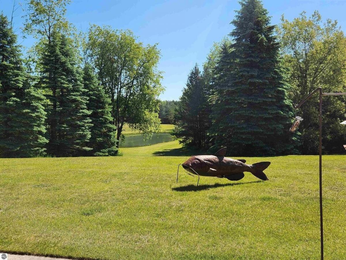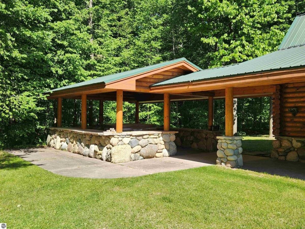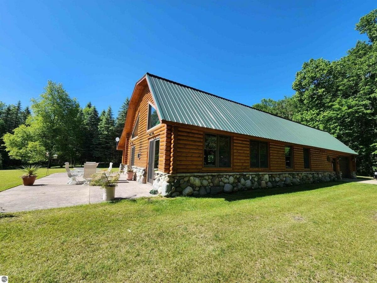 PRIVATE, BEAUTIFUL LOG HOME ON 10 ACRES, with several outbuildings! Two-story, log with custom natural stone accents and stamped concrete floors with in-floor heat! Modern kitchen with high quality stainless appliances, quartz counter top and hickory cabinets. Huge master main floor bedroom with large ceramic shower, walk-in closets, and laundry. Second story boasts its own bedroom, bathroom, kitchen and living room, with room for additional bedrooms. Home has full length covered porch, with custom lighting there is also a covered gazebo for a hot tub or cookouts! Includes a detached outbuilding with two horse stalls, water, electric, additional 30x72 pole barn, insulated, heated, covered lean to on both sides, in-floor radiant heat via wood burning boiler system with propane backup system in place. An additional 27x30 pole barn for additional storage!!! There is a beautiful deep pond on the property - Stocked with many varieties of fish, aerator, and ready for a lovely waterfall. Enjoy your view from the elevated deer blind in the apple orchard or watch them from your living room. A must see in the heart of Beautiful Northern Michigan just a few miles from Torch Lake and the other amazing Chain of Lakes.