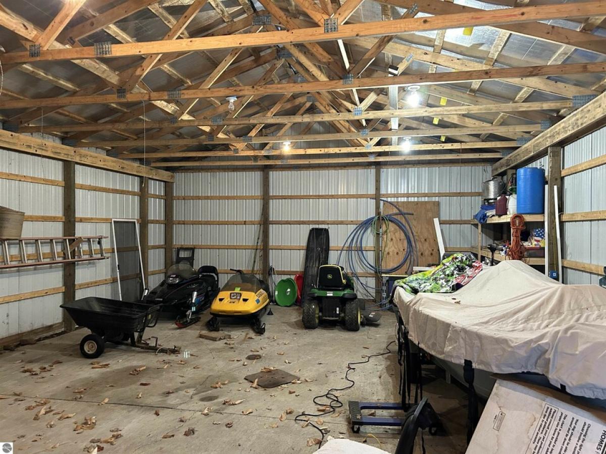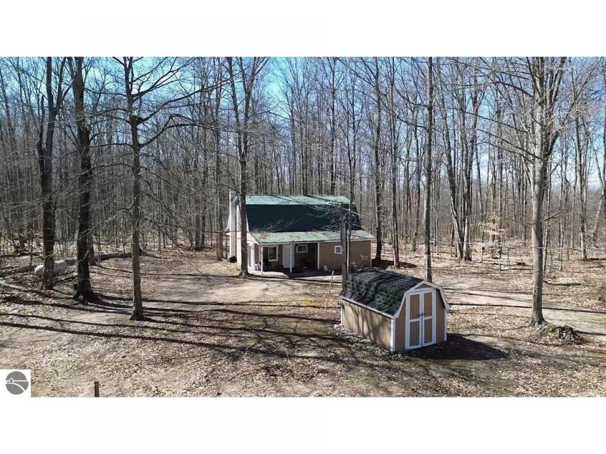 10 ACRES! So many possibilities with this unique property use as an up north getaway retreat, hunting lodge, build your forever home and so much more. The home on the property features 1,440 sq. ft. of living space, a living room, kitchen, 2 bedrooms, 1 bath, a laundry room, covered porch and a metal roof. A large pole barn is ideal for your workshop, hobbies, cars and toys. There is a garden shed too! Wildlife abounds in this private, wooded setting. Surrounded by some of the best ORV and snowmobile trails in northern Michigan. Currently split into two five acre parcels.