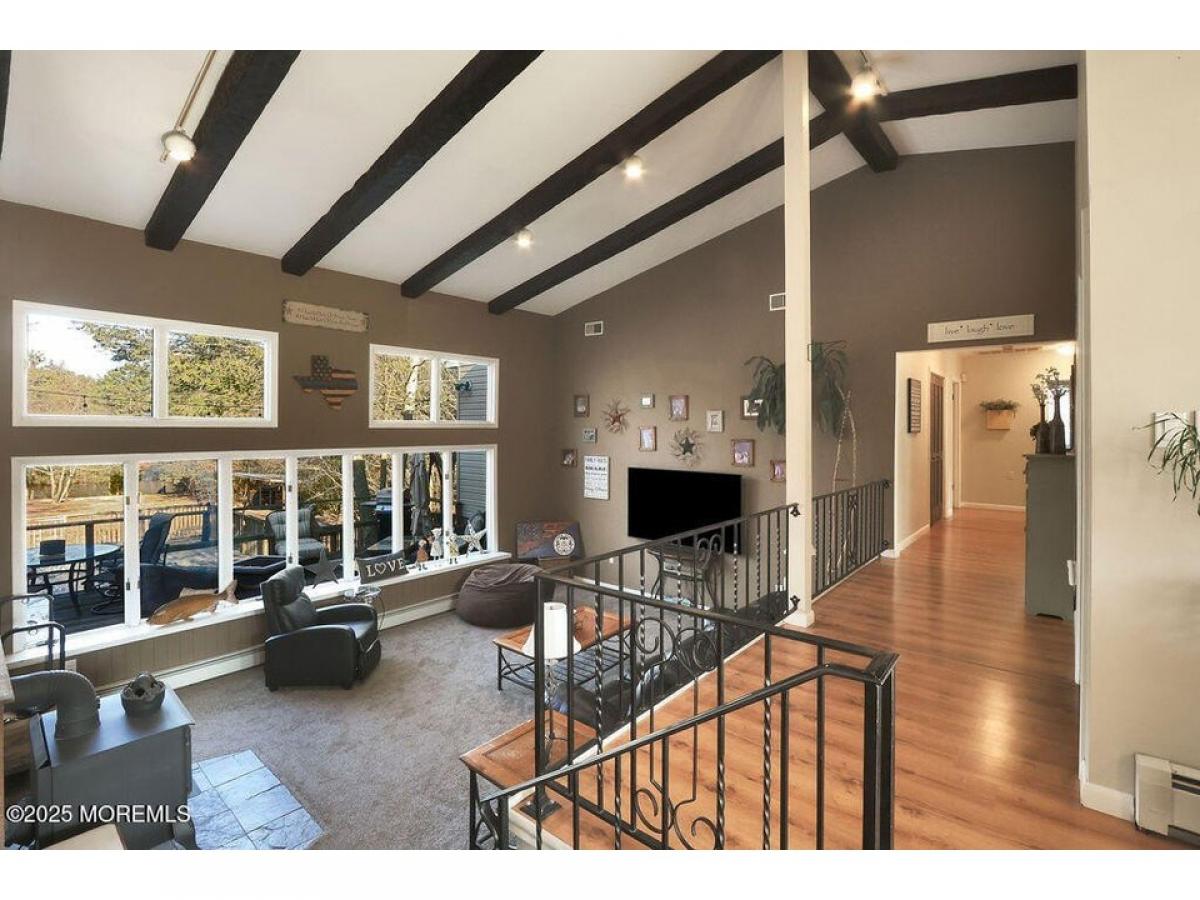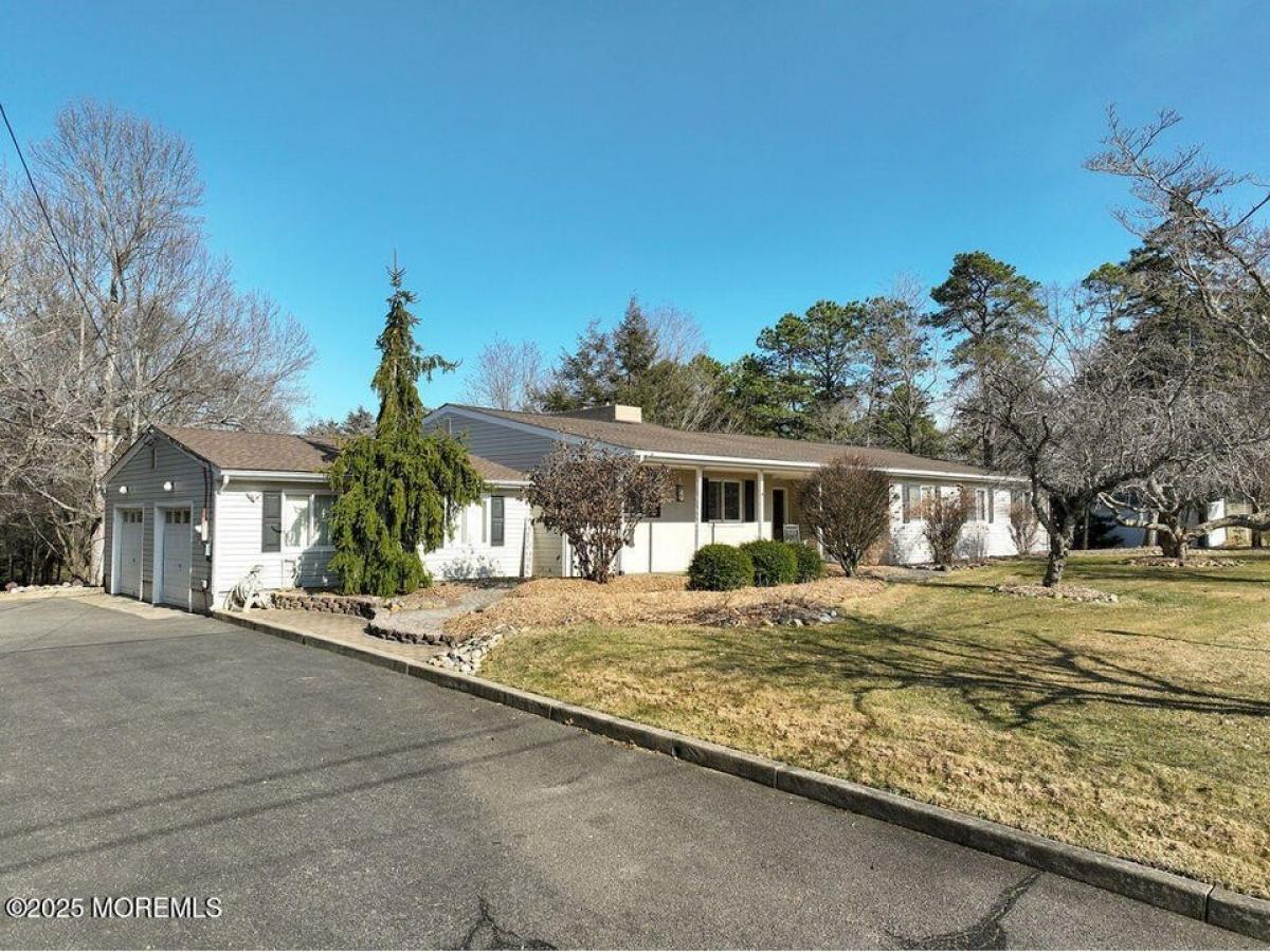 Nestled on over an acre of property, there#039;s something special about this house. It#039;s got that WOW factor! This stunning custom ranch is the perfect blend of space, comfort, and tranquility. Step into this beautifully designed home, where an open and airy living space welcomes you with high ceilings, views of the lake and lots of natural light. Step down into the sunken living area featuring two open rooms one with a fireplace and one with a wood burning stove perfect for entertaining, updated kitchen with white cabinets, granite counter tops and stainless steel appliances, large dining room, 4 generous sized bedrooms and 3 full bathrooms. Very large primary en suite with 2 walk in closets and a full bath. Closet is big enough to be an office. A two tiered deck with an above ground pool is perfect for summer entertainment. Oversized 2 car garage with workbenches and a large driveway, plenty of room for parking or to store your boats/campers. Roof replaced 2023. Take a walk down to the water where you can paddle board or kayak on Holiday Lake. Walking distance to the park, golf course and country club. Excellent school district. A quick ride to the beautiful beaches of LBI and close to the parkway.