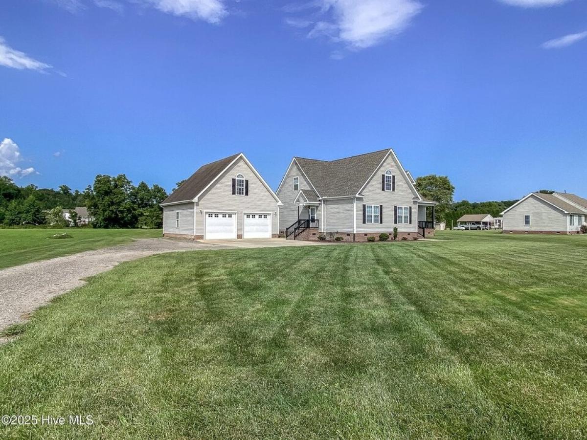 Looking for no HOA no flood ins. needed. minutes to the NC/VA border, than this is the home! Spacious living in this stunning Moyock,NC property. This perfectly situated on 1.56 acres, Perfect for multi-generational living. The oversized detached 30x28 garage is a dream come true, with an unfinished room above it. Need extra storage or a workshop already here! This home is a rare find! Step inside to a welcoming Great Room, complete with a cozy gas fireplacemdash;ideal for family gatherings. The kitchen is a chef#039;s delight, featuring ample cabinet space, stainless steel appliances, and a convenient breakfast bar that seamlessly connects to the dining area. The dining area includes a sliding door leading to a covered deck, where you can enjoy serene views of the expansive backyard. The primary bedroom is located on the main floor and boasts a luxurious ensuite with a double vanity and walk-in shower. Two additional bedrooms and a full bath are also on the first floor. Upstairs, you#039;ll be amazed by the spaciousness, including a 4th bedroom, two versatile flex rooms, and another full bathmdash;This home is perfect for those seeking space, comfort, and a great place to entertain. Situated minutes to the NC/VA border for an easy commute to Hampton Roads. Within an hour to the beaches of the OBX and 30 minutes to Elizabeth City. Enjoy the pace of life in the county with the local Moyock farmers market. Don#039;t miss outmdash;call today to schedule your private tour!