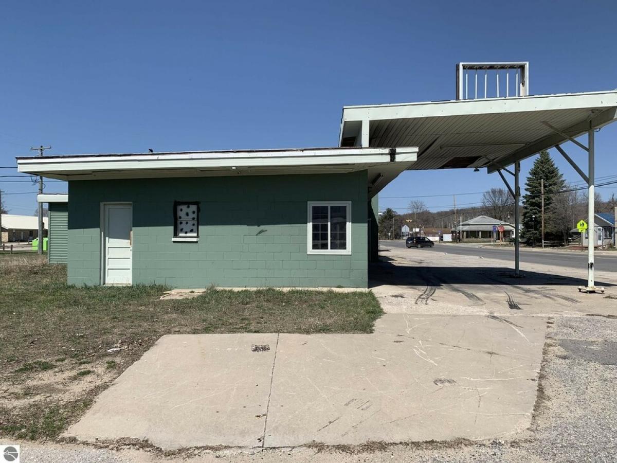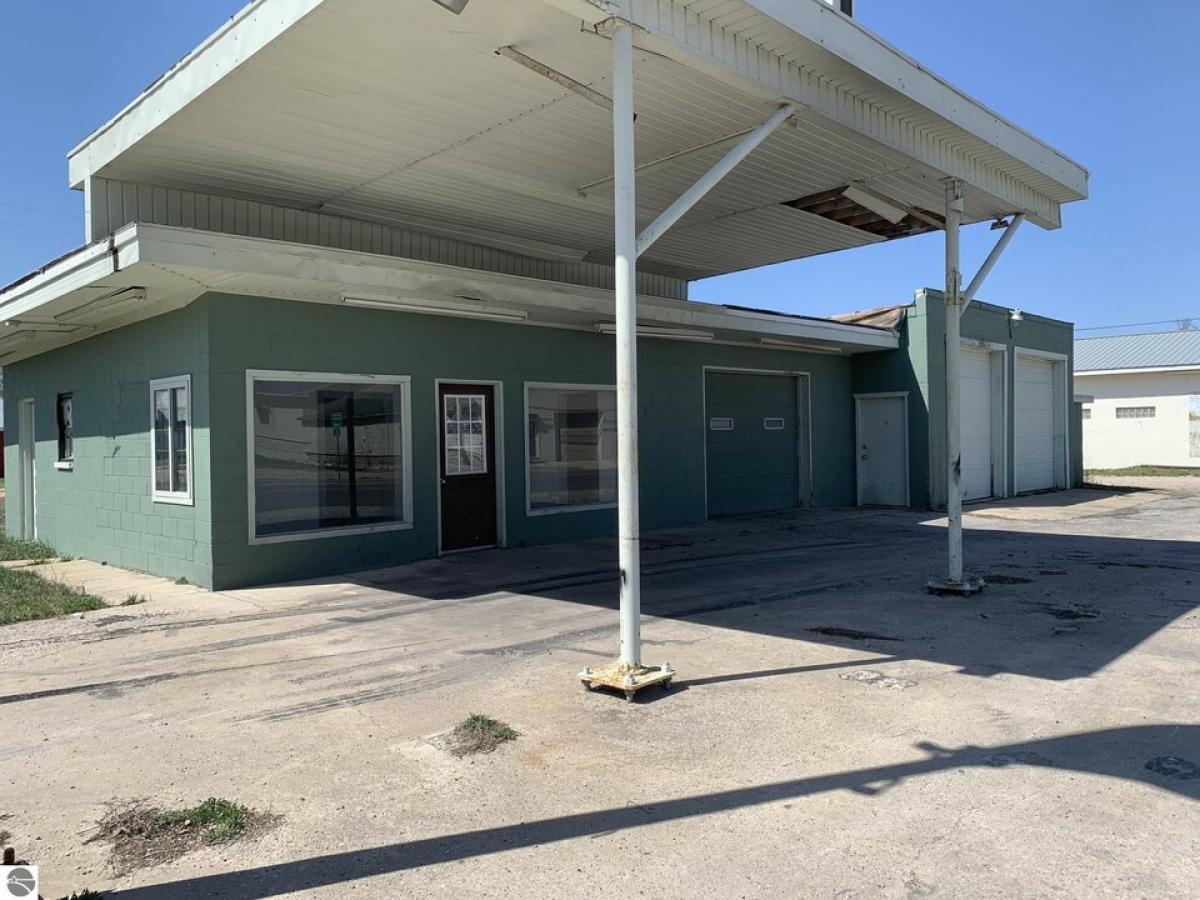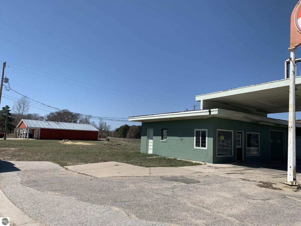 Commercial Block Building in Rapid City with new roof. Building was used as a service station with 3 service bays. Pull under canopy attached to front of building. Paved parking area and aprons to the bays. Large over head doors. Corner lot with busy main road frontage leading to Torch Lake, Alden or Acme and Traverse City. Plenty of possibilities with this building and location. In the early 2000s when the tanks were removed.